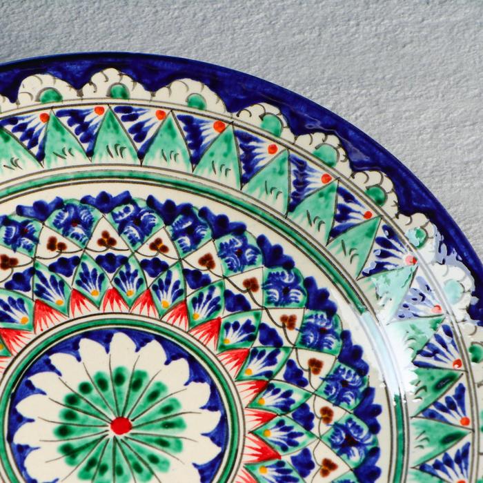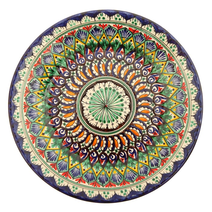 Габариты: 26 x 26 x 3 Страна: Узбекистан В боксе: 25 шт Состав: Керамика Материалы: керамика Фасовка: по 1 шт Индивидуальная упаковка: Без упаковки Сертификат: СТР Набор: Нет Цвет: Синий Форма: Круглая Диаметр, см: 25 Тематика: Растительный орнамент Рисунок: Да Материал: Керамика Вид тарелки: Плоская Можно мыть в посудомоечной машине: Нет Можно использовать в СВЧ-печи: Да Текстура: Гладкая Особенности: Ручная работа, Без особенностей Для горячего: Да Посуда с национальной росписью станет отменным подарком для ценителей высокородной посуды. Риштан — город на востоке Узбекистана, один из древнейших в Ферганской долине. С давних времён Риштан славится своим гончарным искусством изготовления цветной керамики. Красноватую глину для изделия добывают в самом городе. Мастера утверждают, что их глина настолько высокого качества, что даже не нуждается в предварительной обработке. Дополните коллекцию кухонных аксессуаров пряными восточными нотами. Все товары производства Узбекистан. ДополнительноКомментарии к товару