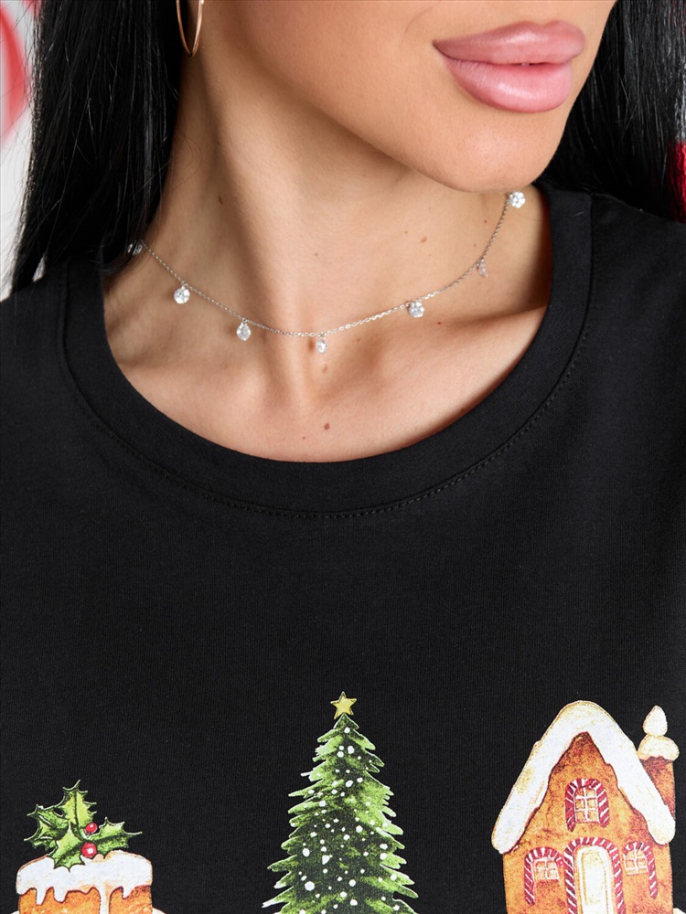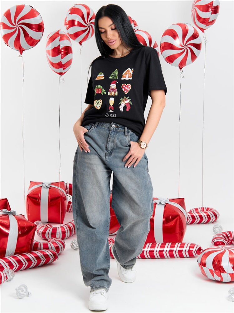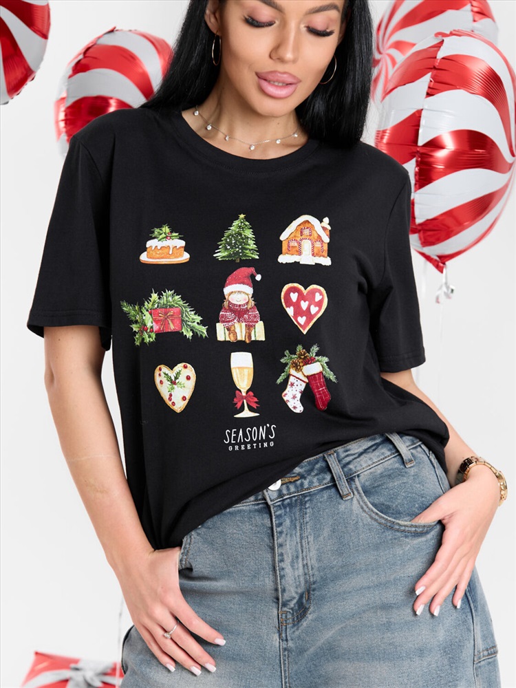 Эта футболка с новогодним принтом создана для тех, кто любит атмосферу зимних праздников. Яркие краски сразу вызывают ассоциации с тёплыми семейными вечерами, подарками под ёлкой и ароматом имбирного печенья. Классическая футболка с коротким рукавом и О-образной горловиной, будет отлично смотреться как за новогодним столом, так и в канун праздников.