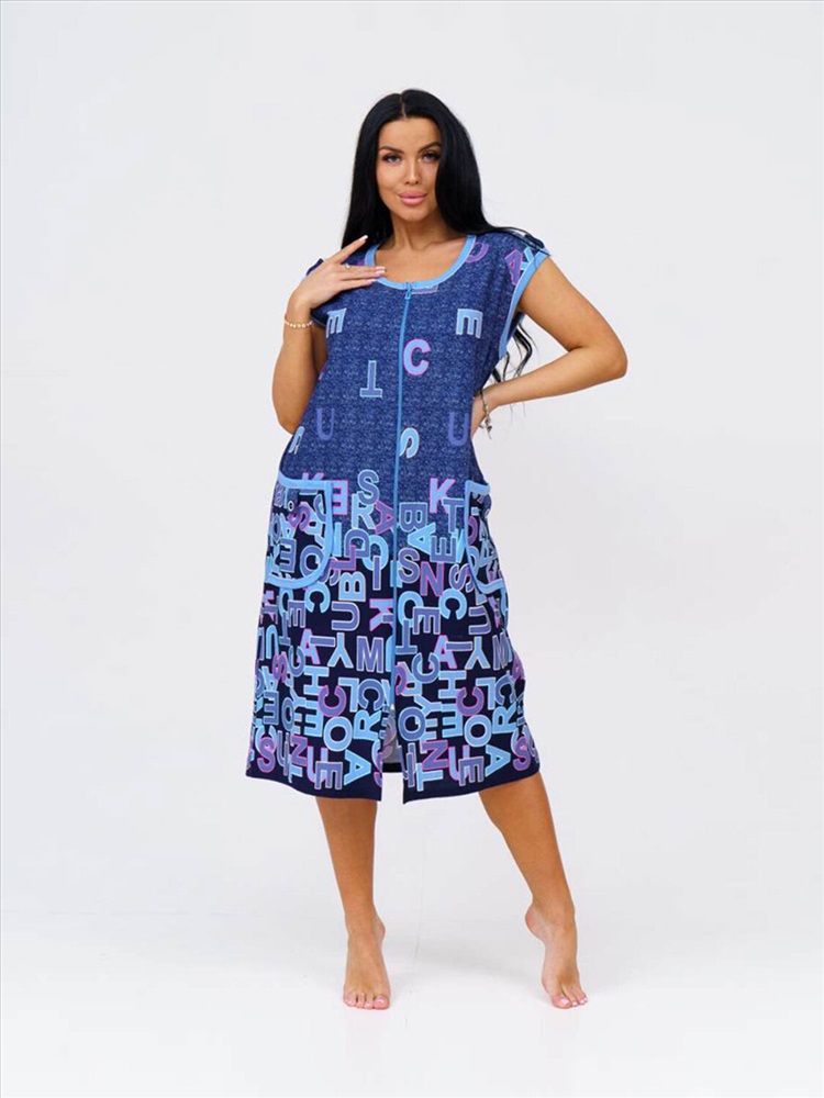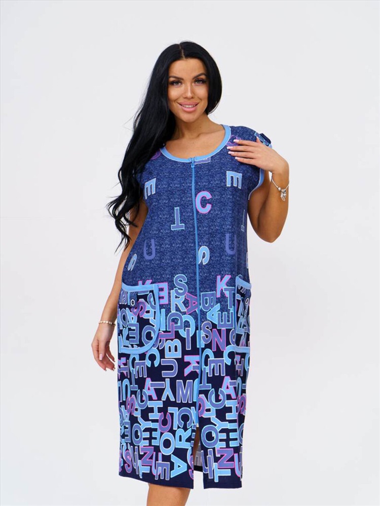 Производитель: Текс-плюс; Российский размер: 48; Обхват груди: 94-98; Обхват талии: 78-81; Обхват бедер: 102-104; Артикул поставщика: НФ-00152157; Ткань: Кулирка; Состав: 100% Хлопок; Год: 2025; Рост: 164-168 Халат женский из трикотажного полотна - кулирка, прямого силуэта с застёжкой на молиню. Полочка с накладными карманами, со вставками по плечевым срезам. Проймы, горловина и карманы обработаны окантовкой.