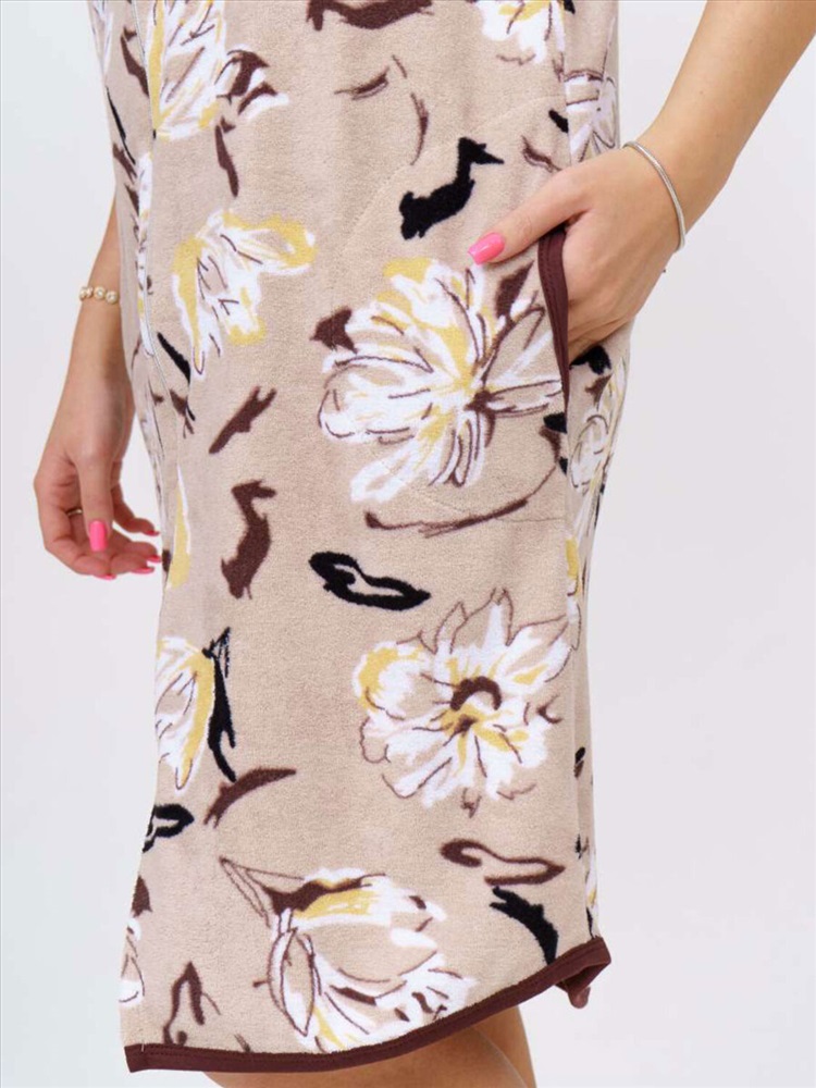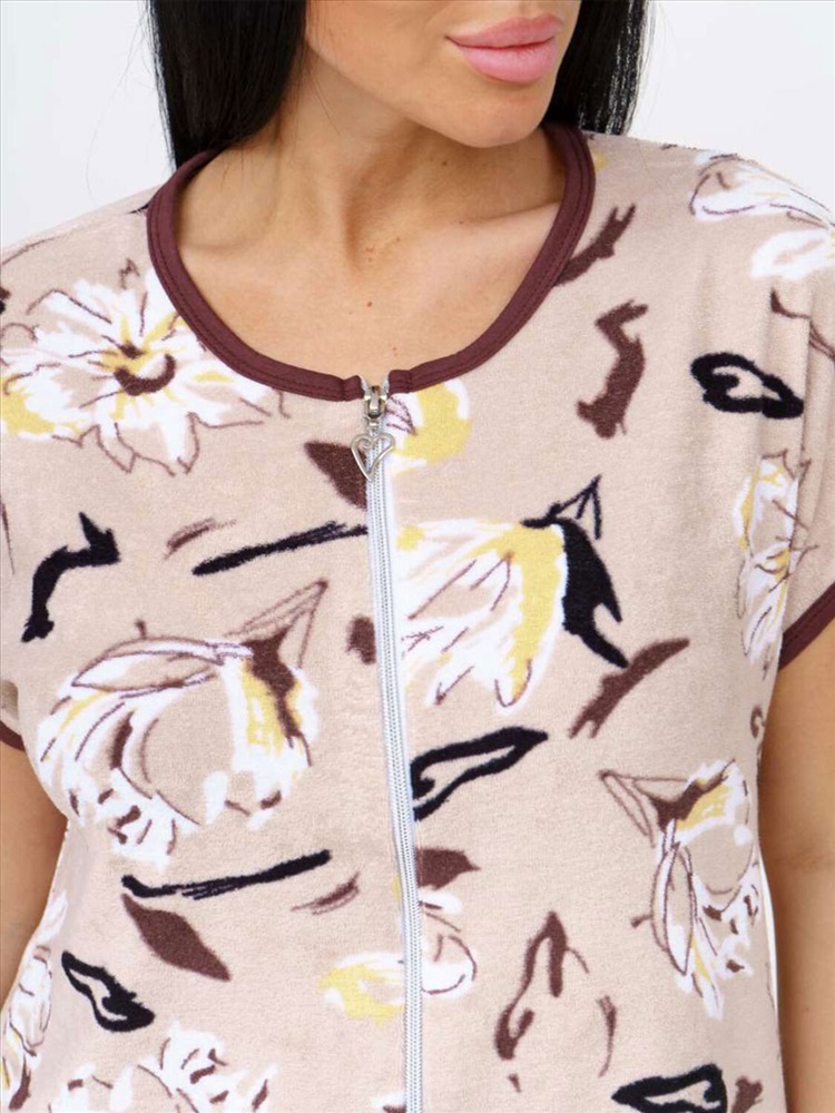 Женский домашний халат, полуприлегающего силуэта с застежкой на молнию. Два втачных кармана. О - образный вырез горловины