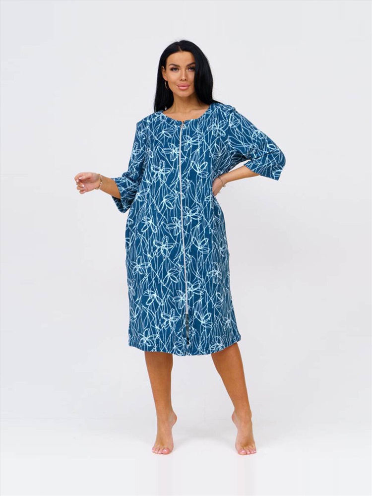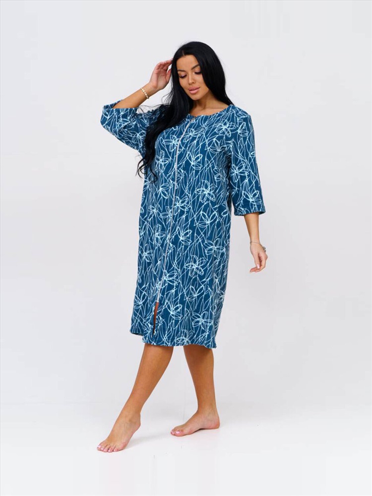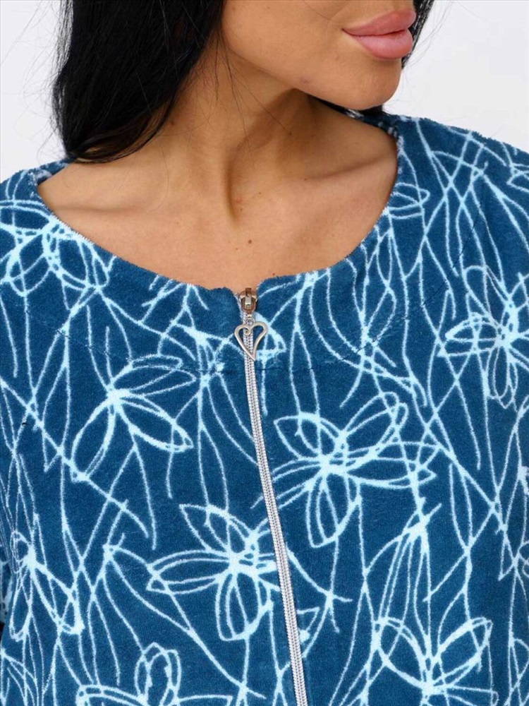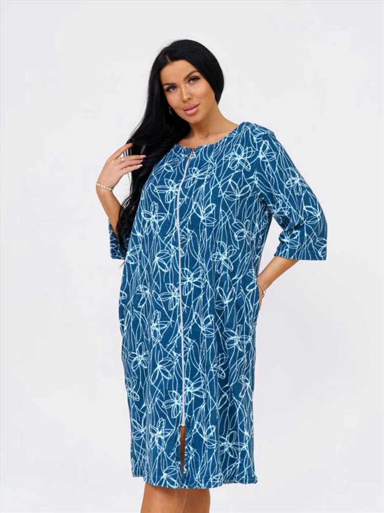 Производитель: Текс-плюс; Артикул поставщика: НФ-00142389; Ткань: Махра; Состав: 80% Хлопок / 20% Полиэстер; Год: 2025; Российский размер: 48; Рост: 164-168; Обхват груди: 94-98; Обхват талии: 78-81; Обхват бедер: 102-104 Халат женский из махрового трикотажного полотна прямого силуэта с застежкой на тесьму-молнию. Полочка с прорезными карманами. Вырез горловины О-образной формы. Рукав втачной базового покроя, длиной 3/4.