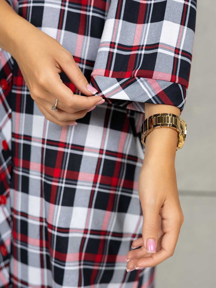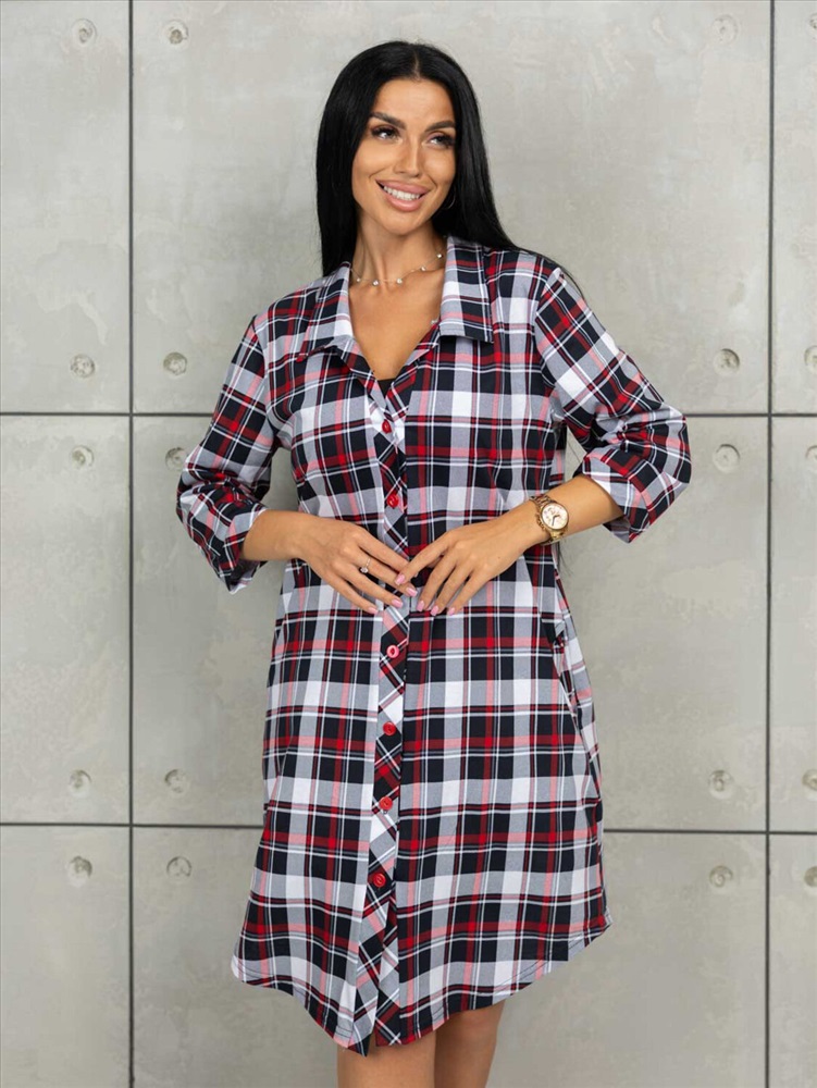 Женский халат из 100% хлопка, длиной до колена, с отложным воротником и застежкой на пуговицы, украшенные золотом, ультрасовременный материал со стильным рисунком, придают данной модели особую роскошь. Удобный втачной рукав, длиной 3/4 подарит свободу в движении, в боковых швах удобные и вместительные карманы.