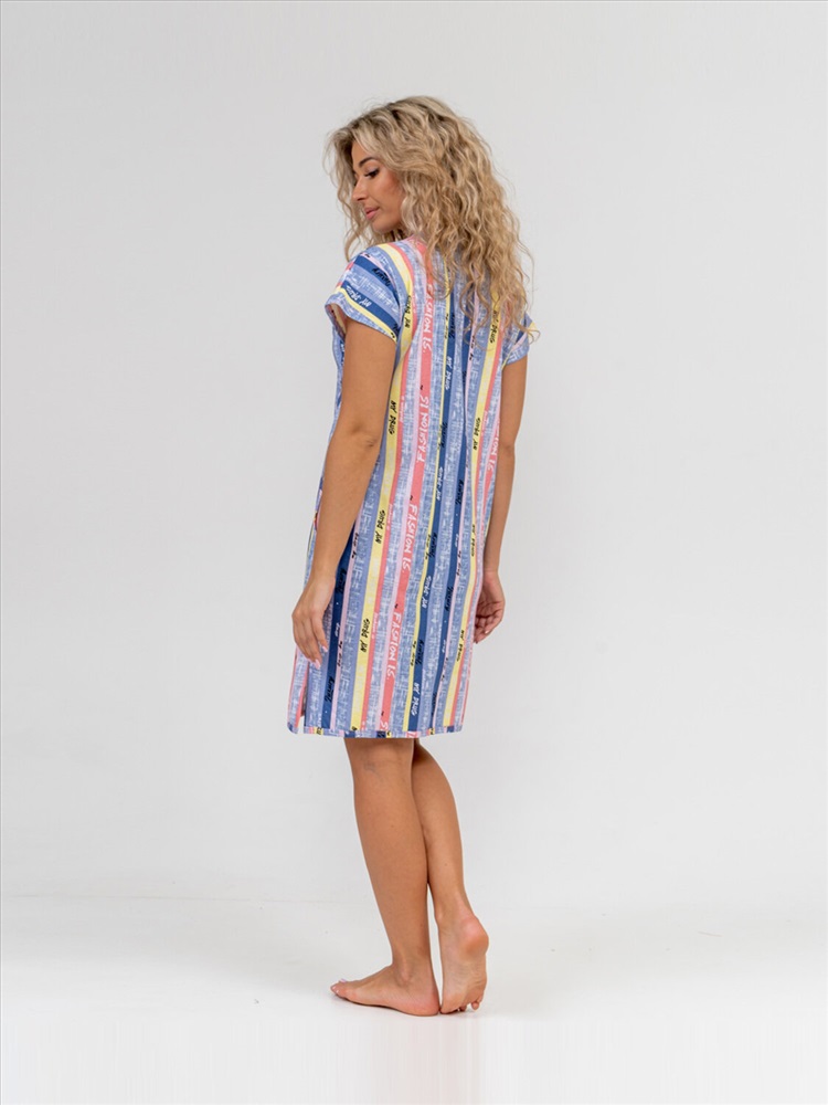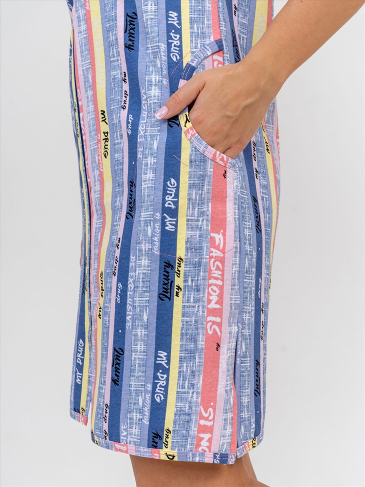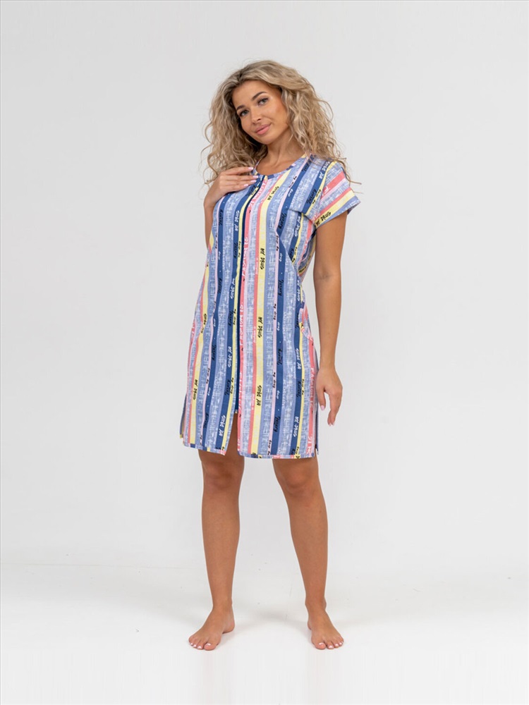 Женский домашний халат из 100% хлопока, длиной до колена, с карманами в боковых швах и коротким рукавом.
