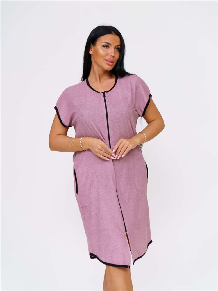 Производитель: Текс-плюс; Российский размер: 48; Обхват груди: 94-98; Обхват талии: 78-81; Обхват бедер: 102-104; Артикул поставщика: НФ-00142906; Ткань: Махра 380гр/м2; Состав: 80% Хлопок / 20% Полиэстер; Год: 2025; Рост: 164-168 Женский домашний халат, полуприлегающего силуэта с застежкой на молнию. Два втачных кармана. О - образный вырез горловины.