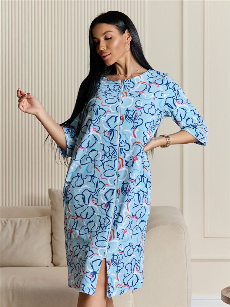 Это великолепное синее платье ниже колена из махры - идеальный выбор для стильных и утонченных дам. Оно идеально подчеркнет вашу женственность и добавит изысканности вашему образу. Кроме того, мягкая и приятная на ощупь ткань махры обеспечит вам комфорт и уют в любое время года. Не упустите возможность выглядеть элегантно и привлекательно в этом превосходном платье!