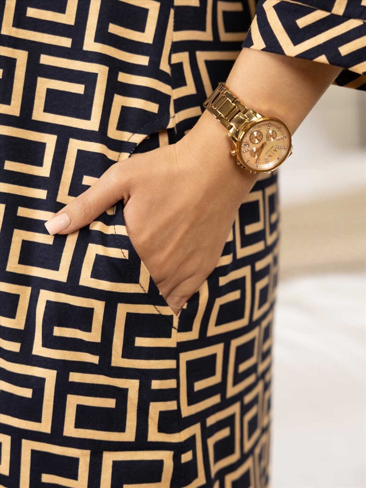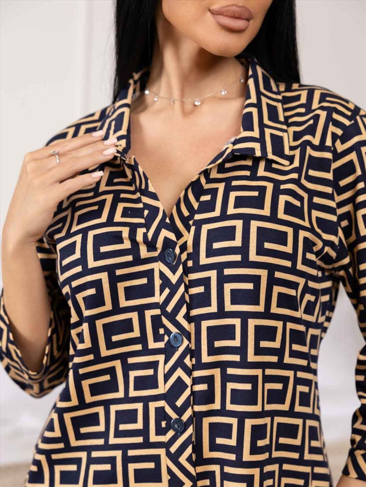Женский халат из 100% хлопка, длиной до колена, с отложным воротником и застежкой на пуговицы, ультрасовременный материал со стильным рисунком, придают данной модели особую роскошь. Удобный втачной рукав, длиной 3/4 подарит свободу в движении, в боковых швах удобные и вместительные карманы.