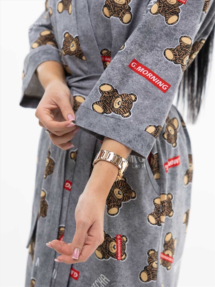 Представляем вам идеальный домашний комплект из 100% хлопка — мягкий и стильный халат с сорочкой для беременных, специально созданный для вашего комфорта. Комплект сочетает в себе элегантность и удобство, что делает его идеальным вариантом как для повседневного ношения, так и для особых моментов, таких как пребывание в роддоме. Халат на запах с длинным поясом-кушаком и карманами в боковых швах. Ночная сорочка с кокеткой на пуговицах, стильной печатью и складками спереди, для комфортного расположения животика.