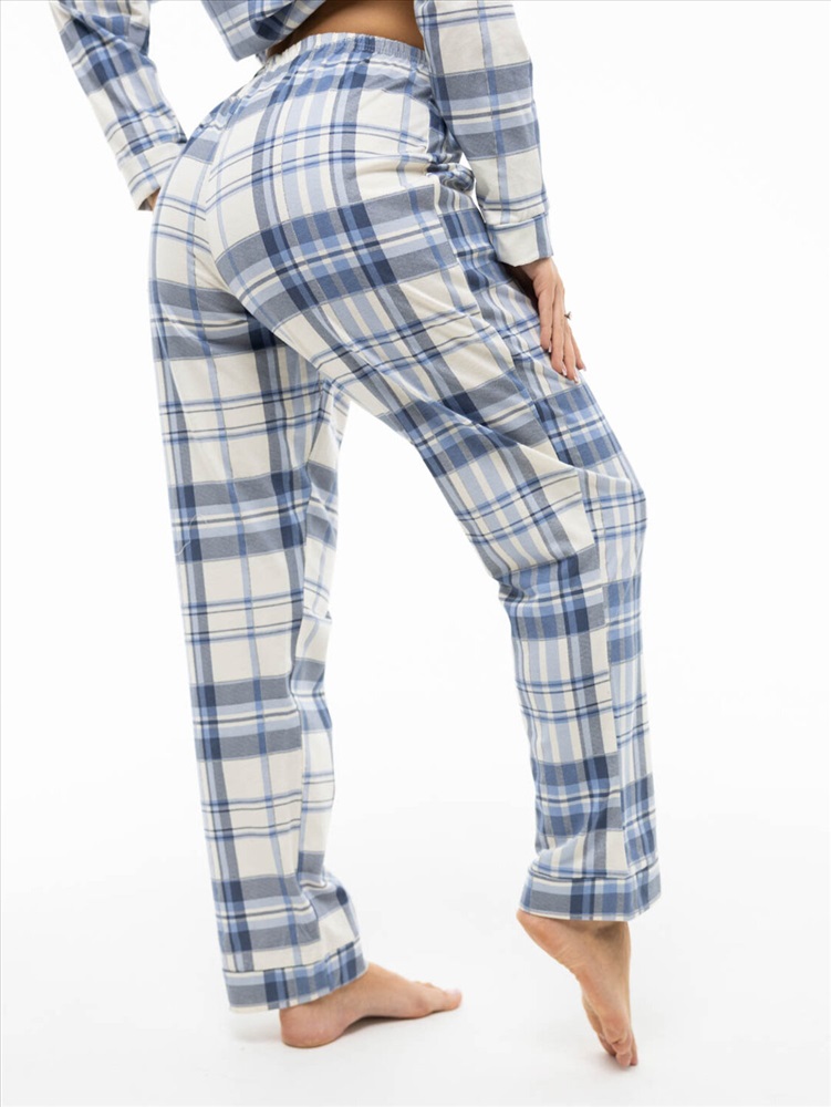 Пижама в клеточку с длинным рукавом станет незаменимой вещью в гардеробе любой девушки. Верх пижамы с отложным воротником, базовым втачным рукавом и двумя накладными карманами на полочке. Брюки умеренного объема на резинке. Наш костюм идеально подойдет для пижамной вечеринки с подружками, фотосессии или просто на каждый день.
