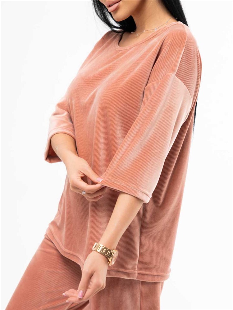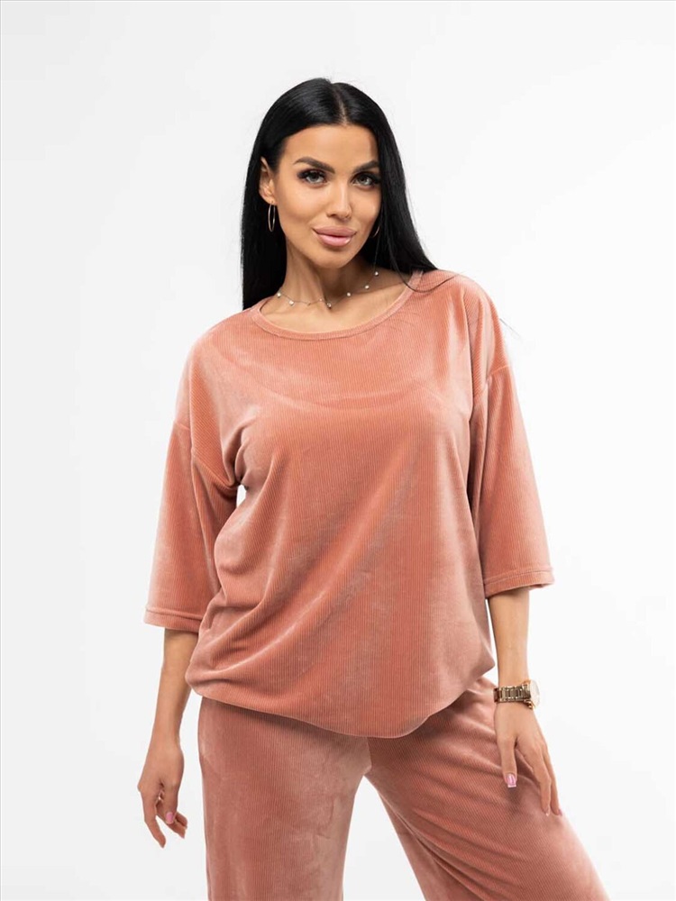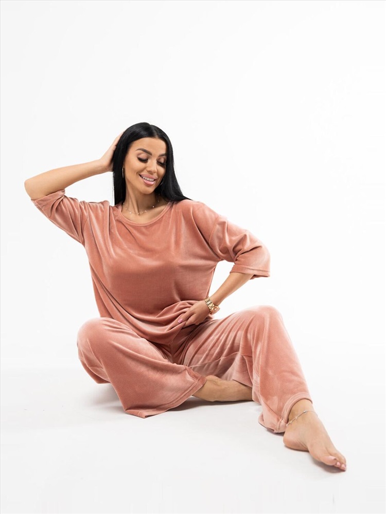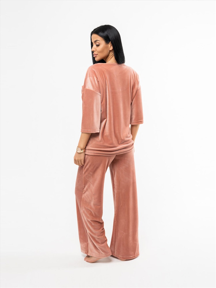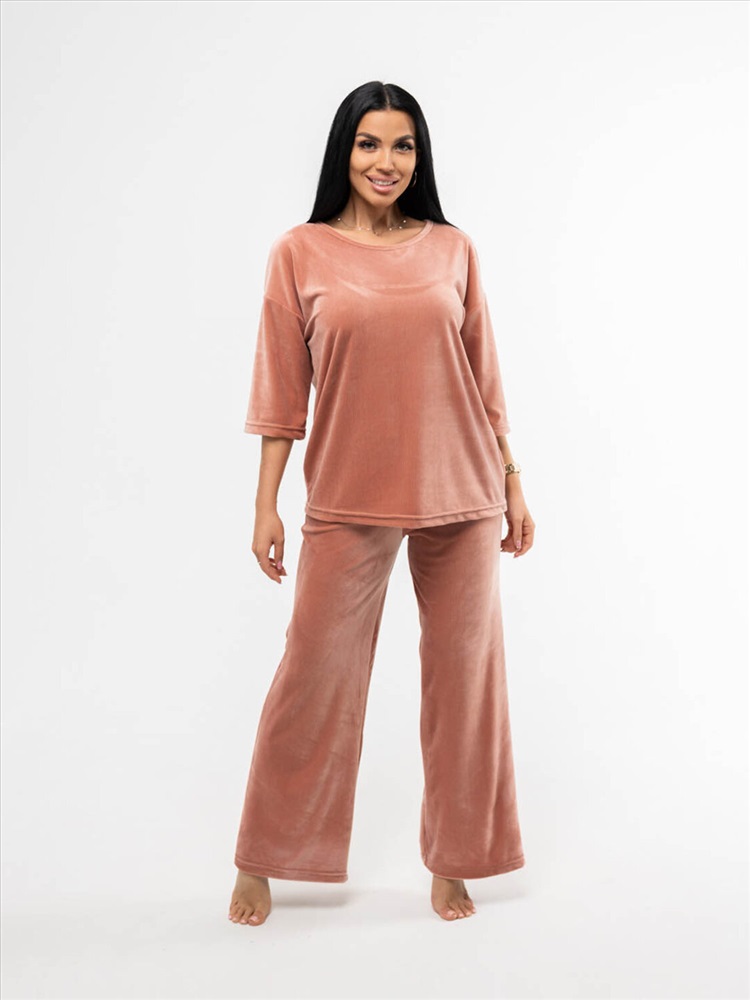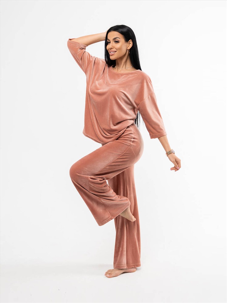 Этот женский велюровый домашний костюм в персиковом цвете станет вашим незаменимым атрибутом для уютных вечеров дома. Мягкий и приятный к телу материал обеспечит вам максимальный комфорт, а стильный дизайн подчеркнет ваш неповторимый стиль. Незаменимый выбор для тех, кто ценит качество и уют!