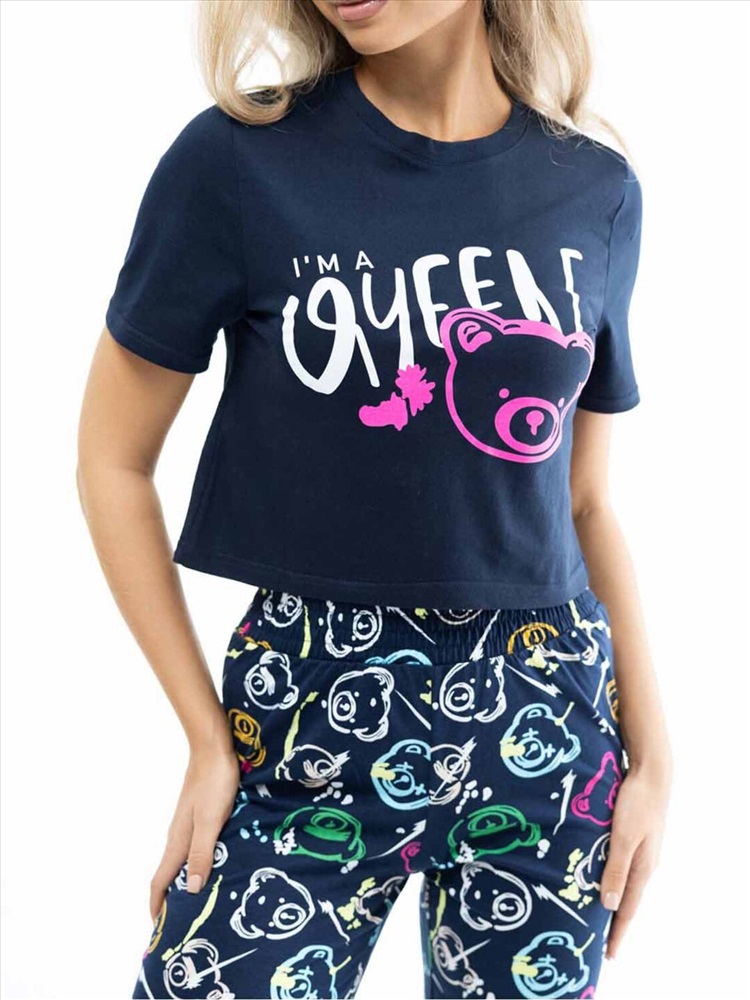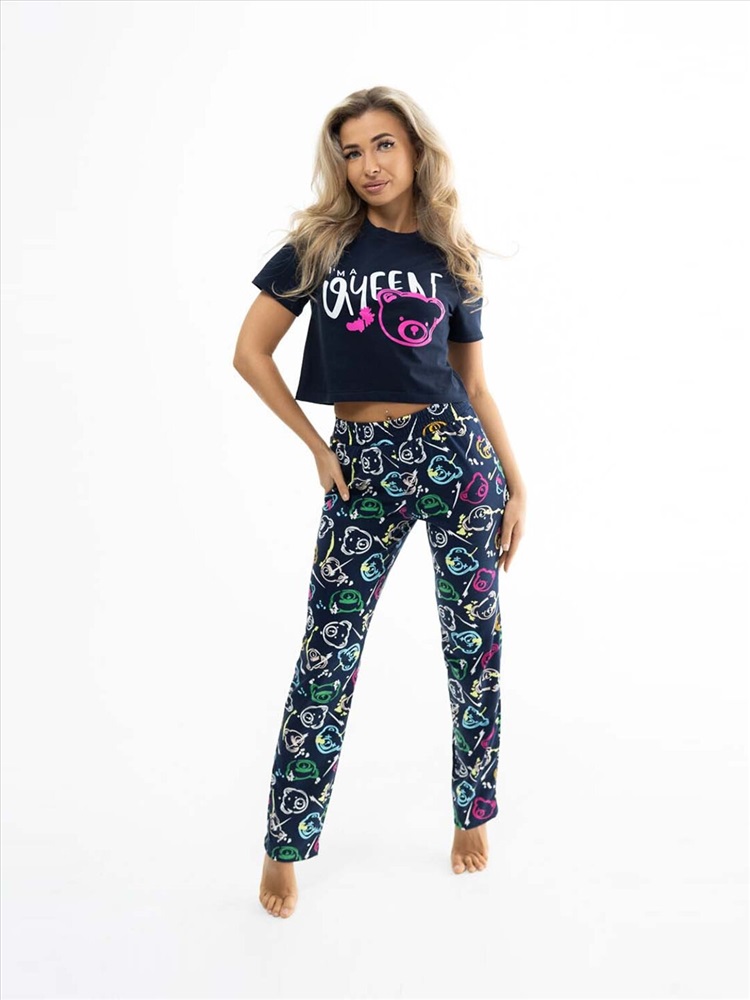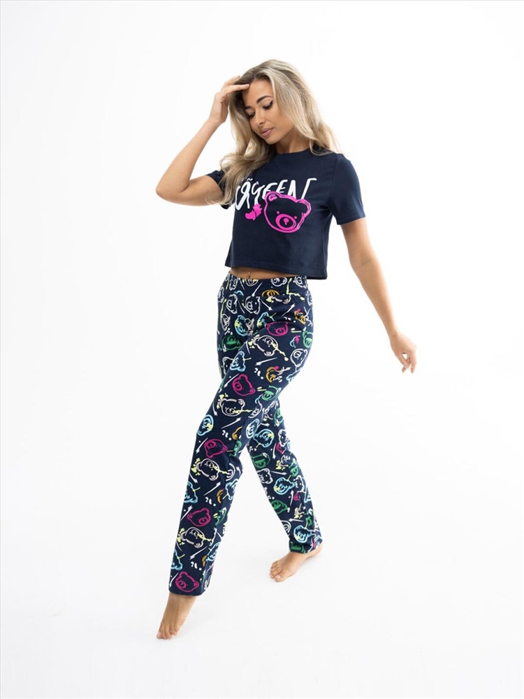 Костюм из 100% хлопка, с яркими брюками и укороченной футболкой, со стильной печатью спереди. Турецкая кулирка - обладает отменным качеством, принт на ней яркий и насыщенный. Печать выполнена профессиональной краской, за счет чего будет радовать Вас долгое время.