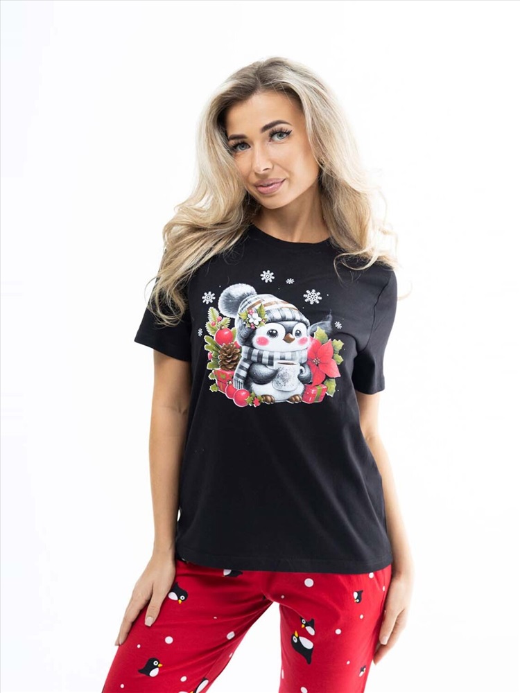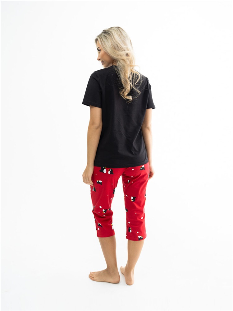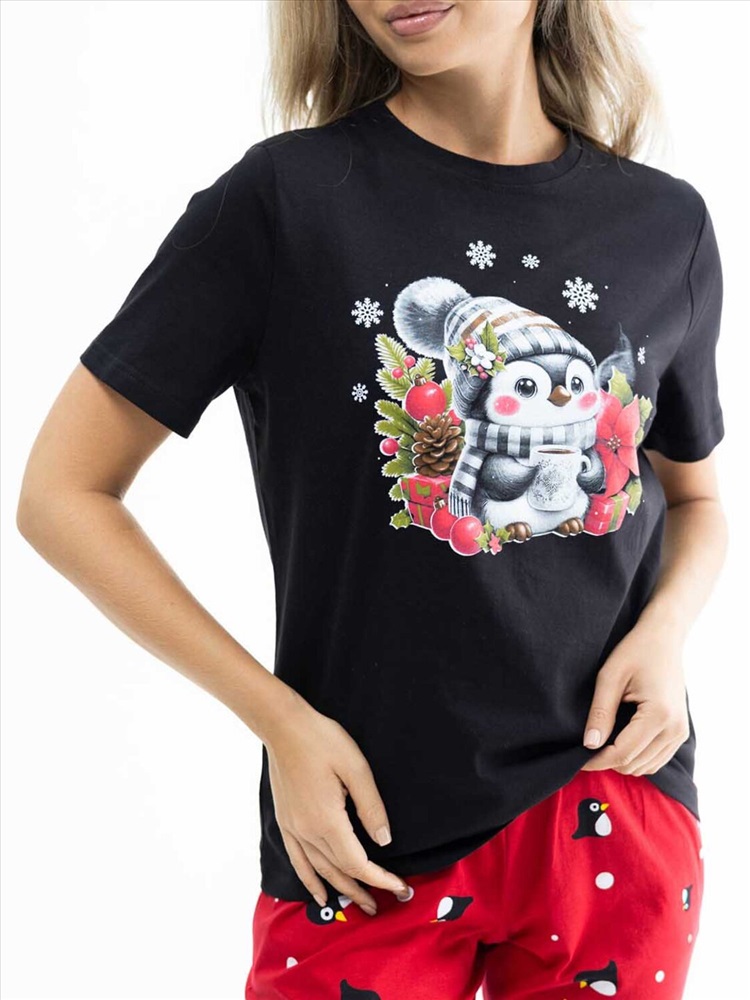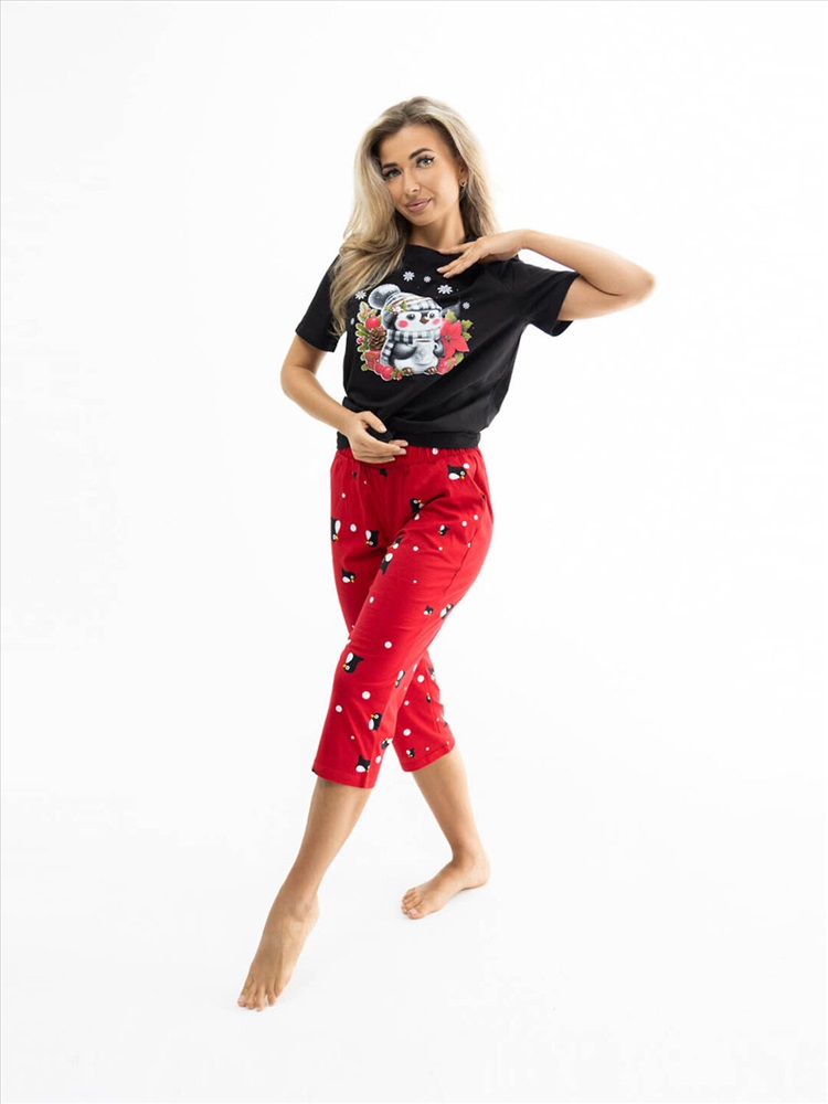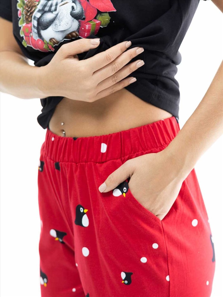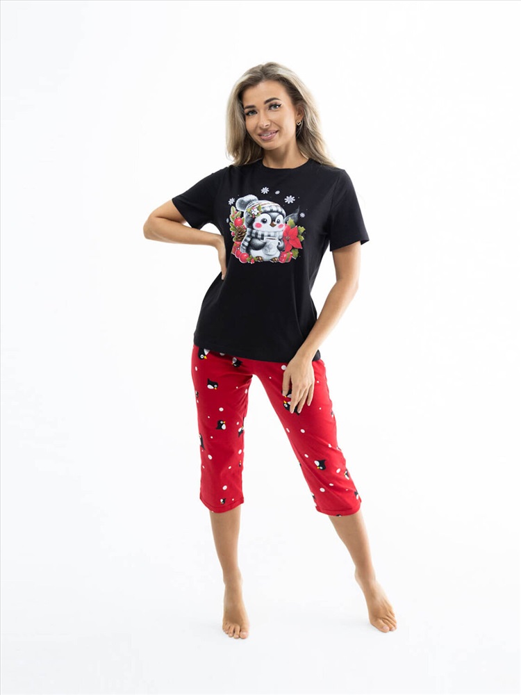 Новогодний костюм из 100% хлопка, уютный и мягкий. Базовая футболка с яркой новогодней печатью, поднимет Вам настроение. Классические бриджи на резинке с карманами будут идеальным вариантом для дома. Костюм отлично подойдет, как для повседневной носки в предновогодние дни, так и для тематической фотосессии.