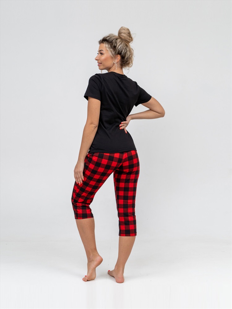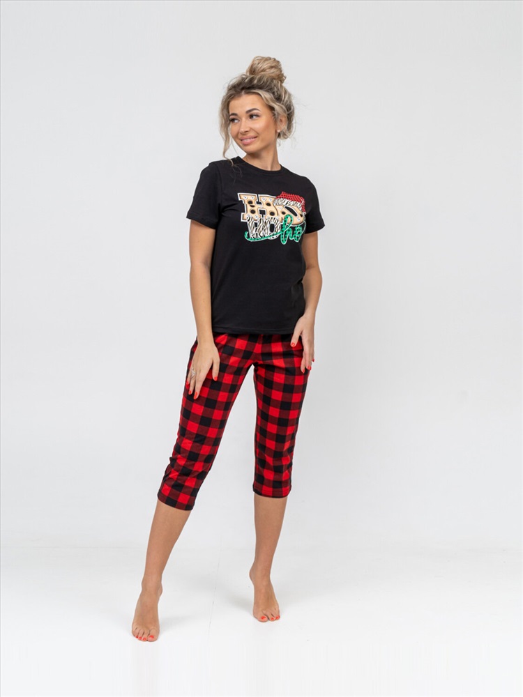 Новогодний костюм из 100% хлопка, уютный и мягкий. Базовая футболка с яркой новогодней печатью, поднимет Вам настроение. Классические бриджи на резинке с карманами будут идеальным вариантом для дома. Костюм отлично подойдет, как для повседневной носки в предновогодние дни, так и для тематической фотосессии.