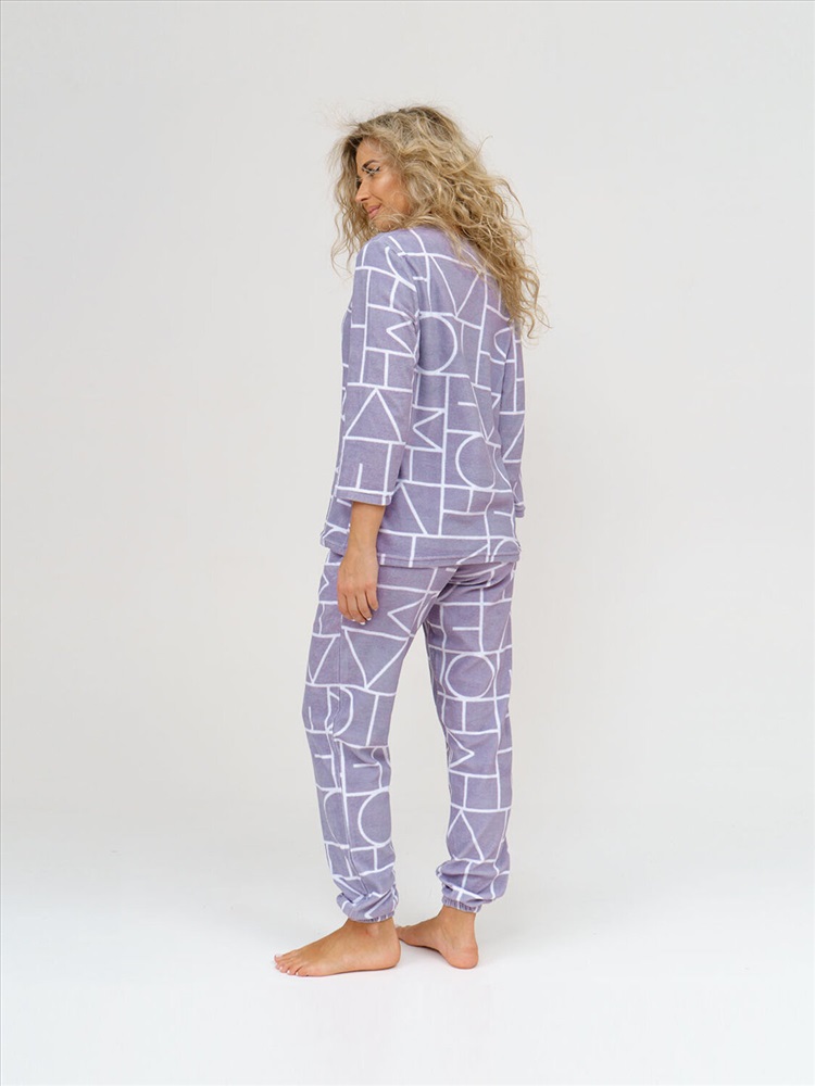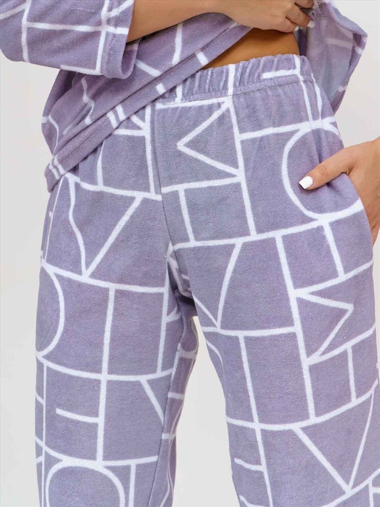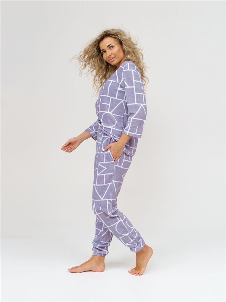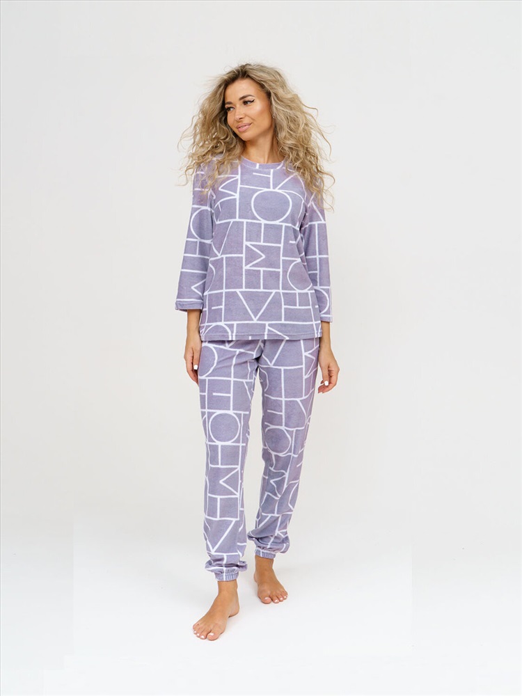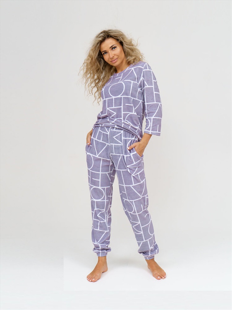 Костюм женский махровый - кофта и брюки. Кофта полуприлегающего силуэта, с втачным рукавом 3/4. Горловина округлой формы.