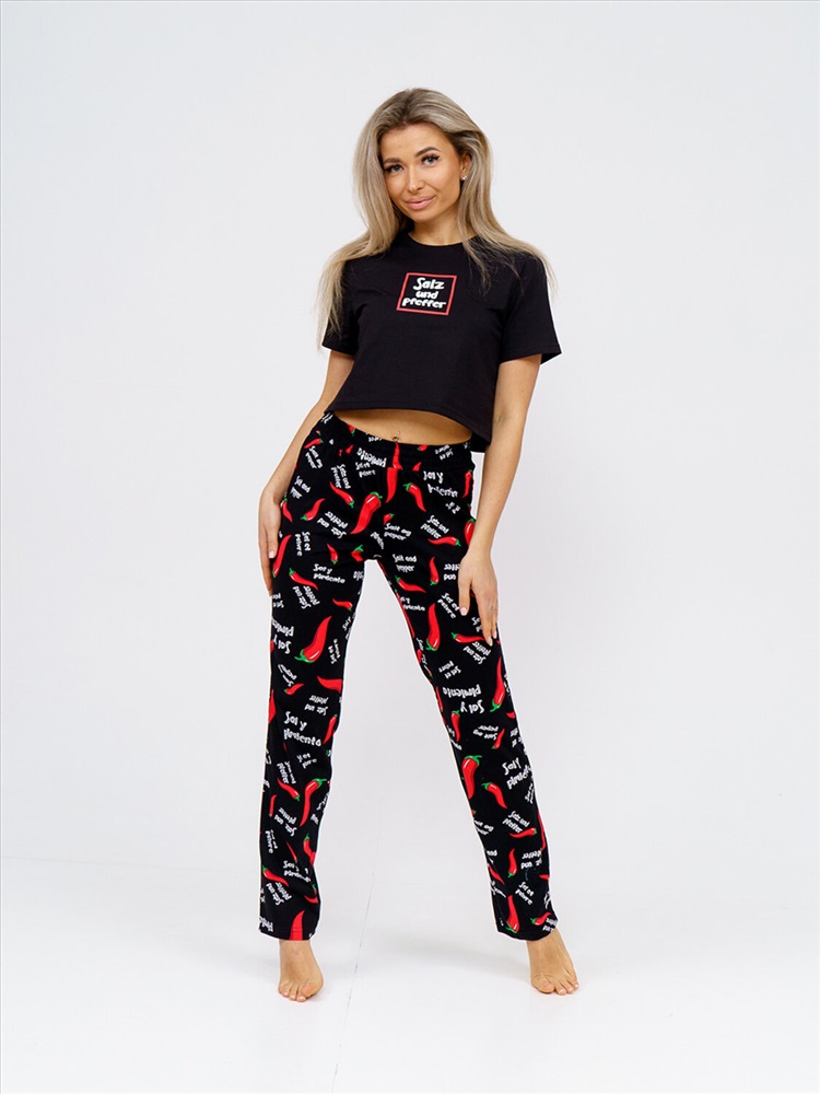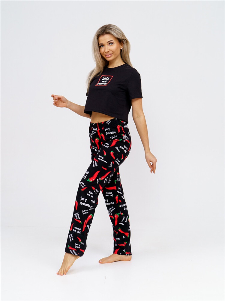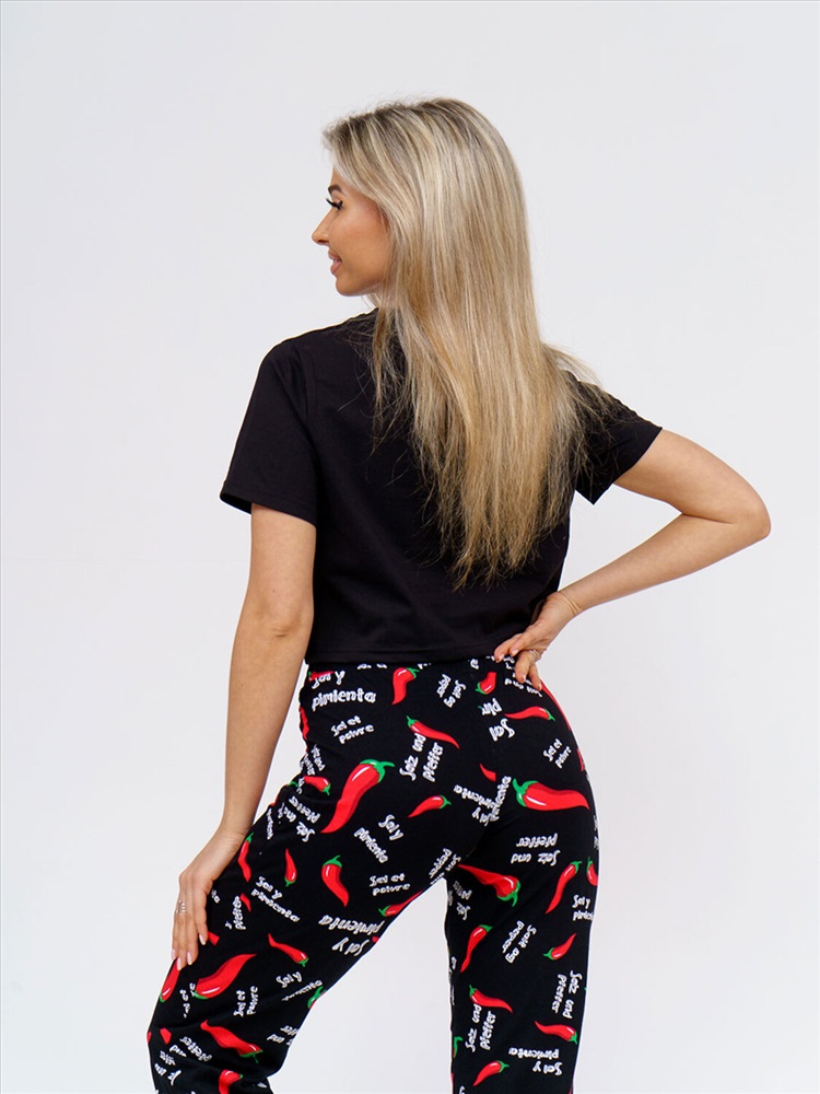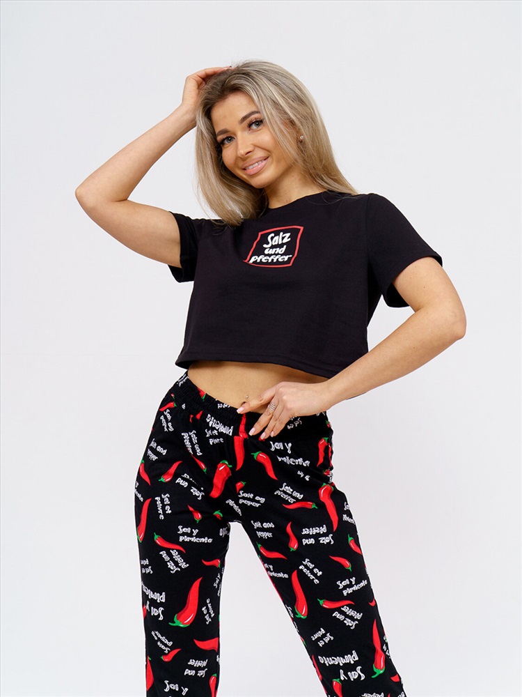 Костюм из 100% хлопка, с яркими брюками и укороченной футболкой, со стильной печатью спереди. Турецкая кулирка - обладает отменным качеством, принт на ней яркий и насыщенный. Печать выполнена профессиональной краской, за счет чего будет радовать Вас долгое время.
