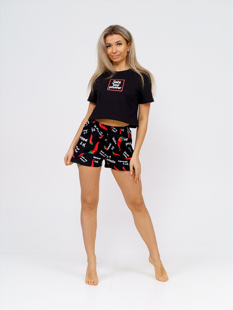 Женский костюм из 100% хлопка, состоит из укороченной футболки и шорт. Укороченная футболка с коротким рукавом, печатью на полочке. Шорты с поясом на резинке. Модная футболка позволит коже дышать, идеальная для фитнеса, тренировки в спортзале или пробежки на открытом воздухе. Универсальная однотонная футболка позволяет создать несколько комбинаций комплектов для различных случаев, на работу или учебу.