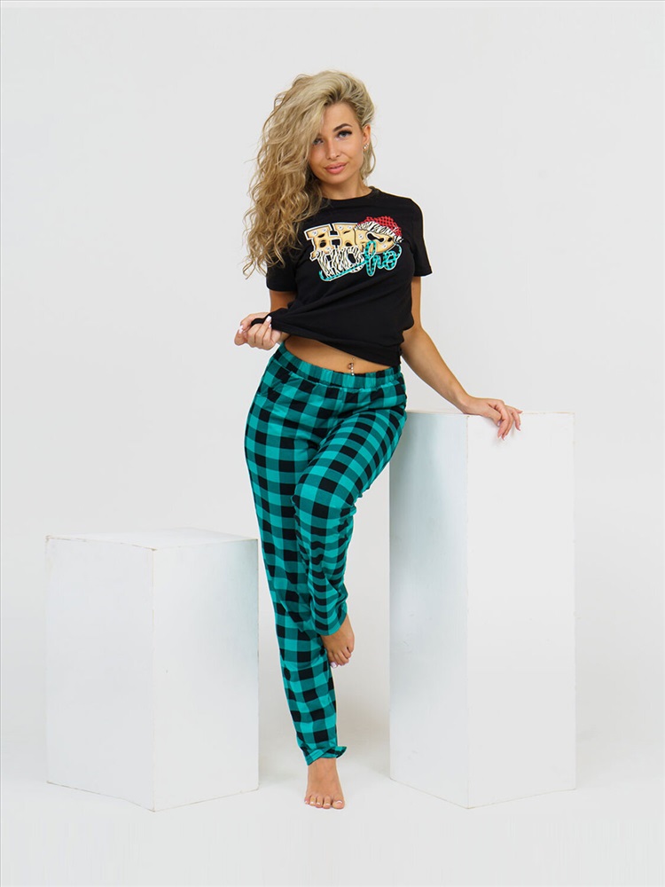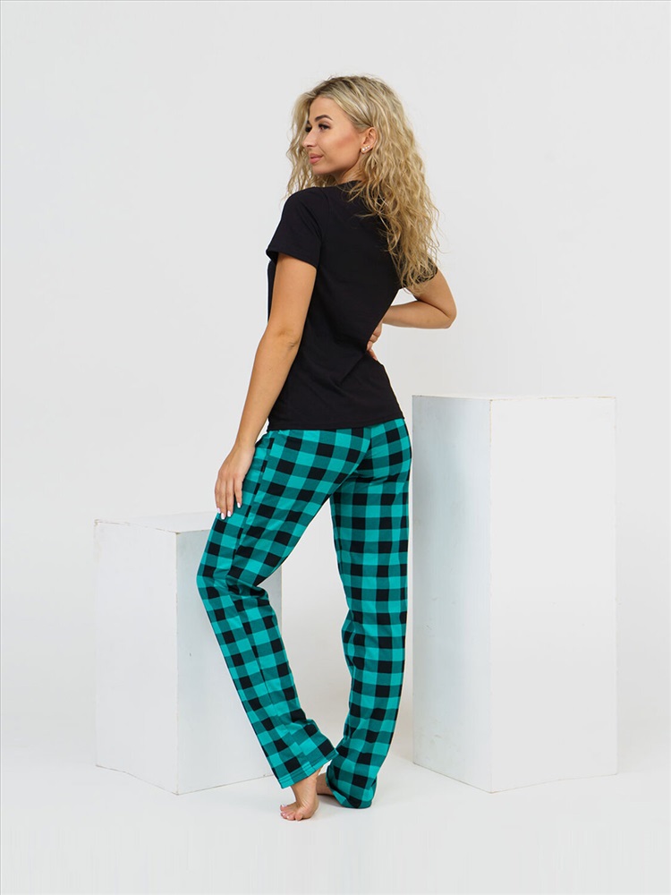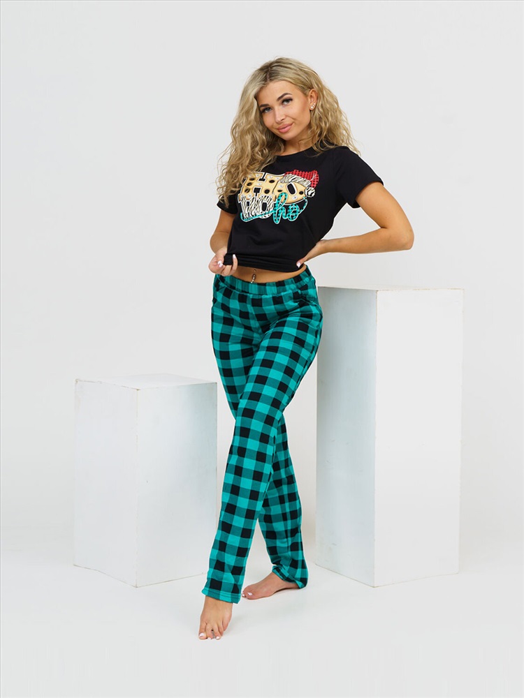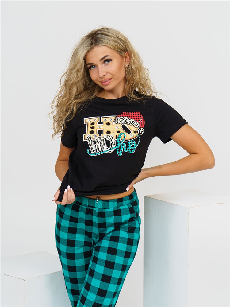 Новогодний костюм из 100% хлопка, уютный и мягкий. Милый новогодний принт не оставит никого равнодушным. Базовая черная футболка с яркой новогодней печатью, поднимет Вам настроение. Брюки на резинке с карманами будут идеальным вариантом для дома. Костюм отлично подойдет, как для повседневной носки в предновогодние дни, так и для тематической фотосессии.
