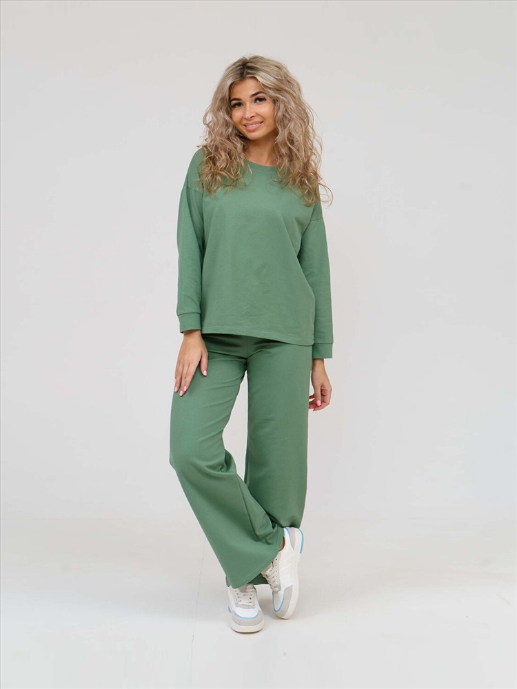 Производитель: Текс-плюс; Артикул поставщика: НФ-00024697; Ткань: Футер; Состав: 75% Хлопок / 20% Полиэстер / 5% Лайкра; Год: 2025; Российский размер: 42; Рост: 164-168; Обхват груди: 82-86; Обхват талии: 66-69; Обхват бедер: 92-95 Молодежный костюм из футера. Толстовка "oversize" со спущенной линией плеча, длинным рукавом с манжетой и О-образной горловиной. Широкие брюки на резинке с высокой посадкой, боковые карманы с отрезным бочком. Материал — футер без начеса, идеальный вариант на весну и лето.
