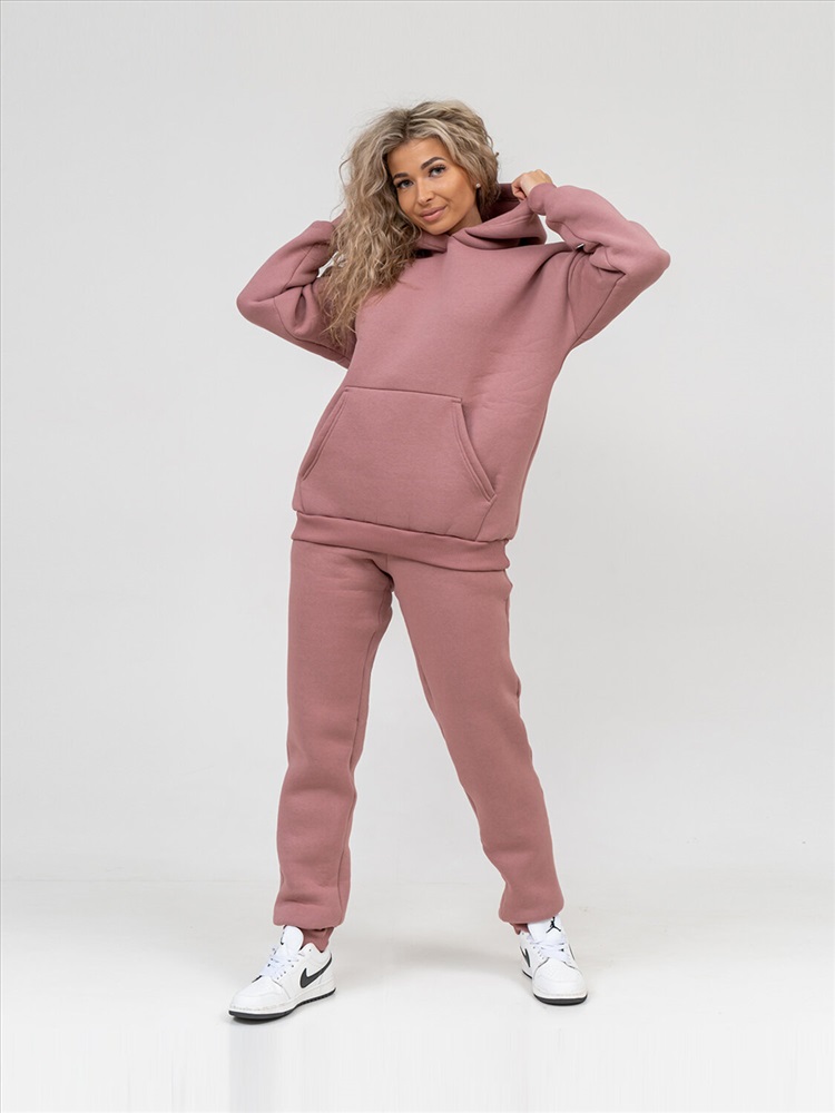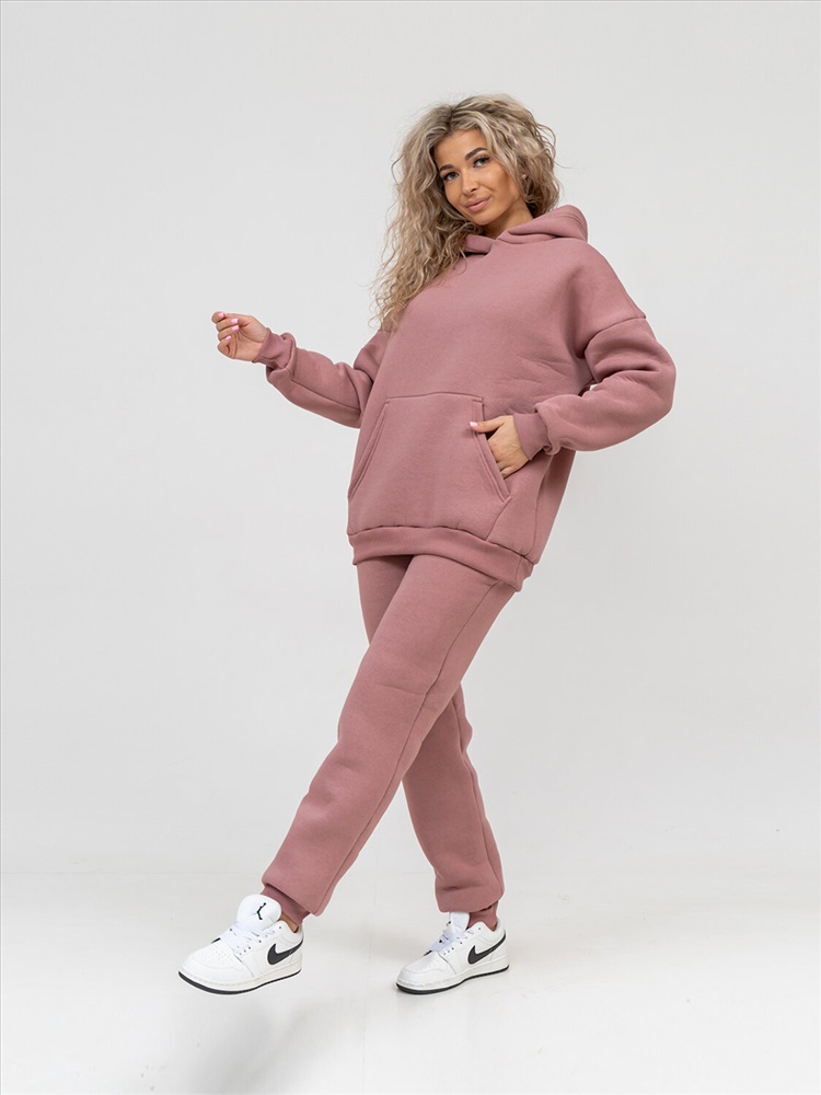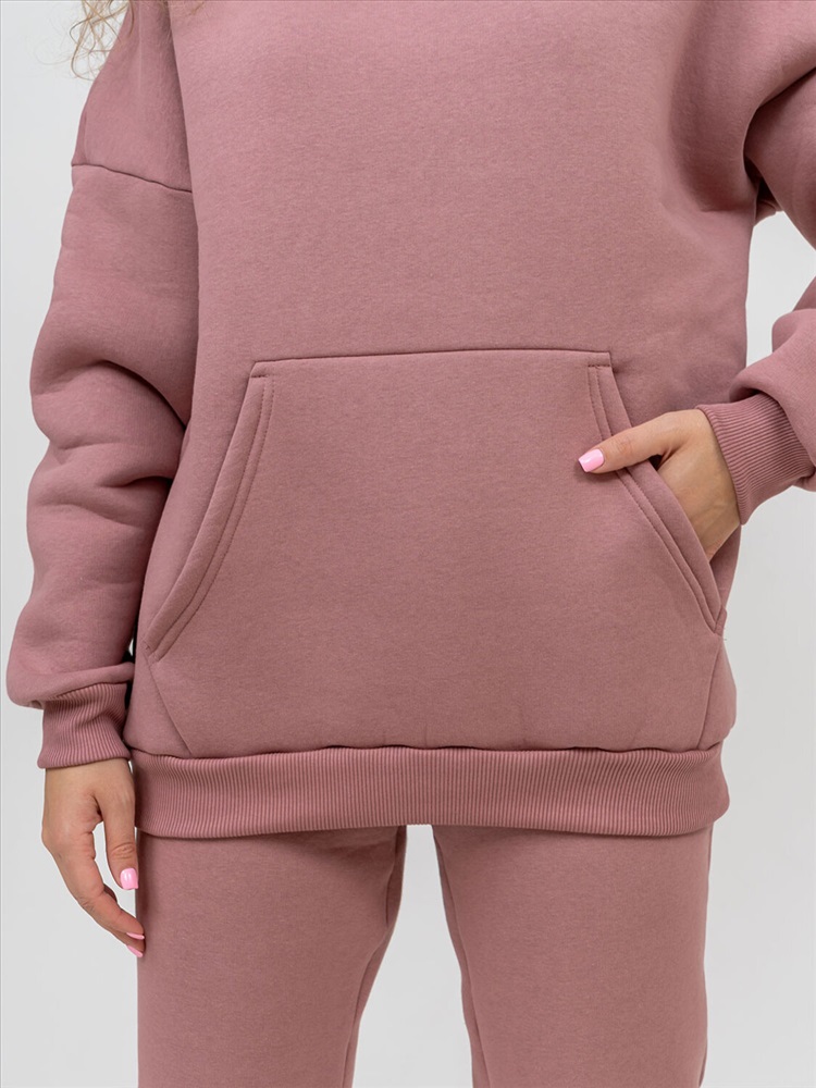 Женский трикотажный костюм из футера с начесом. Толстовка в стиле oversize со спущенной линией плеча и капюшоном. На полочке карман - кенгуру. Брюки полуприлегающего силуэта, с боковыми карманами с отрезным бочком. Отделка из ткани в рубчик, по низу толстовки, рукавам и по низу брюк. Костюм идеально подойдет для сезона осень-зима, в нем вы будете чувствовать себя комфортно в прохладную погоду. Модные тренды от бренда Текс-плюс.Ru придадут вашему образу неповторимость, а премиальное качество подарит незабываемое ощущение комфорта.