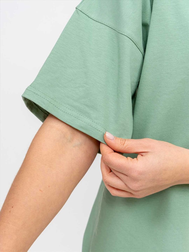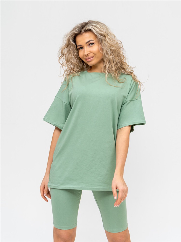 Молодежный костюм из кулирки с лайкрой. Футболка в стиле ОВЕРСАЙЗ с О-образной горловиной, длиной до середины бедра. Велосипедки прилегающей силуэтной формы выше уровня колена.