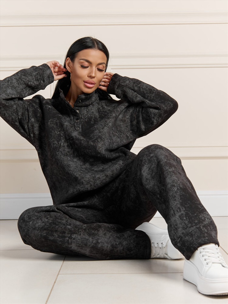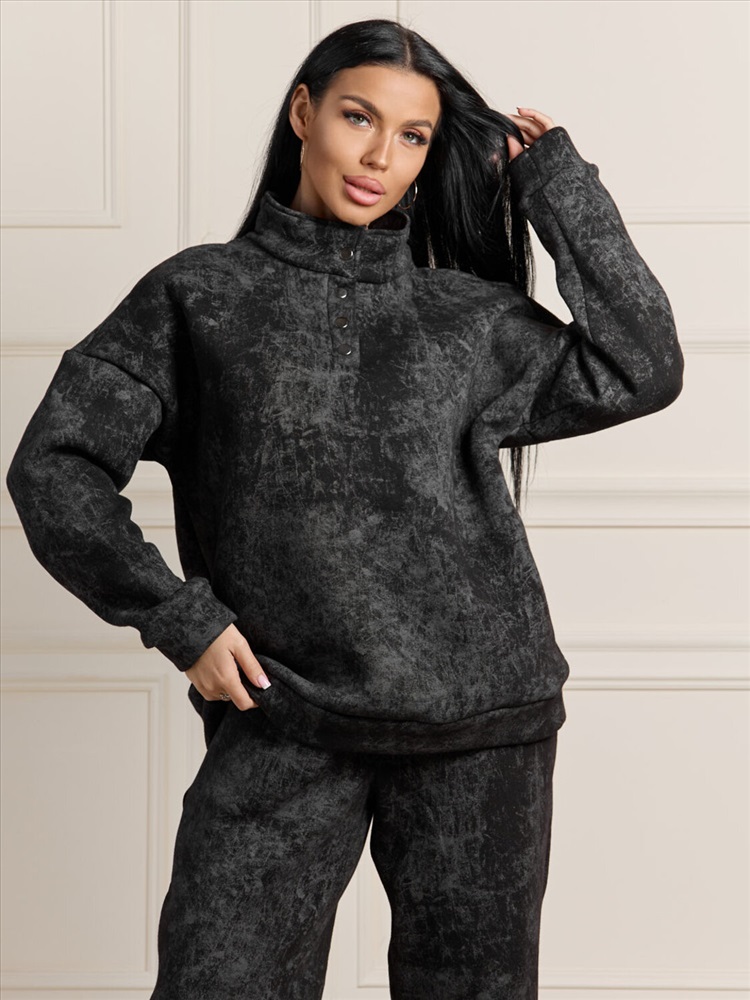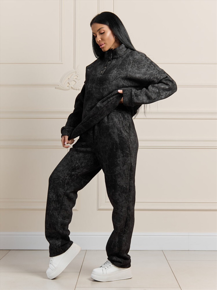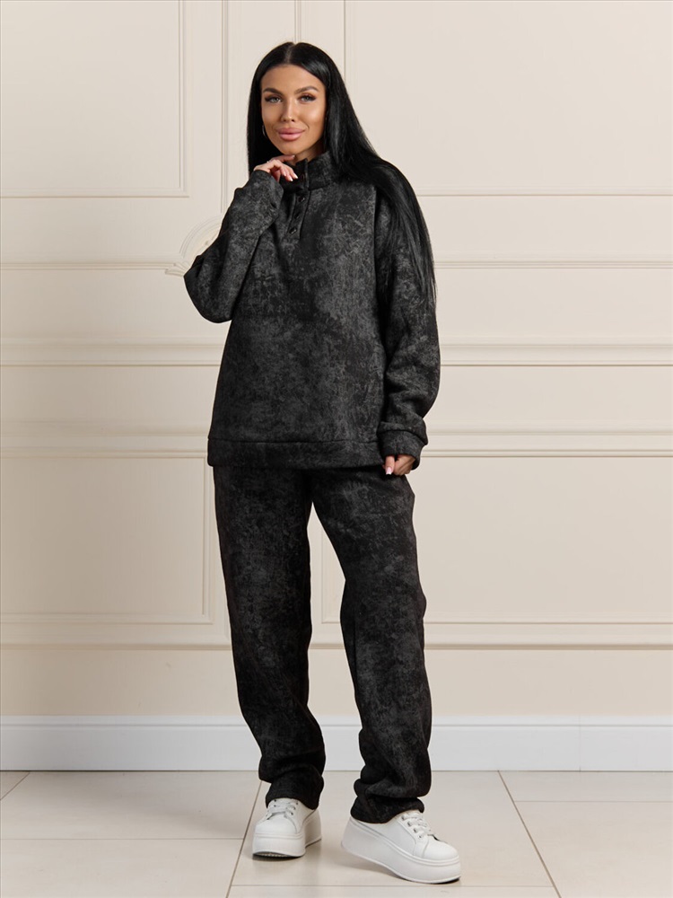 Зимний костюм из ультра модной ткани с начесом, эффект варенки добавляет изюминку изделию. Толстовка с воротником на кнопках защитит в морозы, сохранит тепло и комфорт. Брюки полной длины с карманами можно заправить в ботинки. В нашем костюме вы будите чувствовать себя уютно даже в самый морозный день.