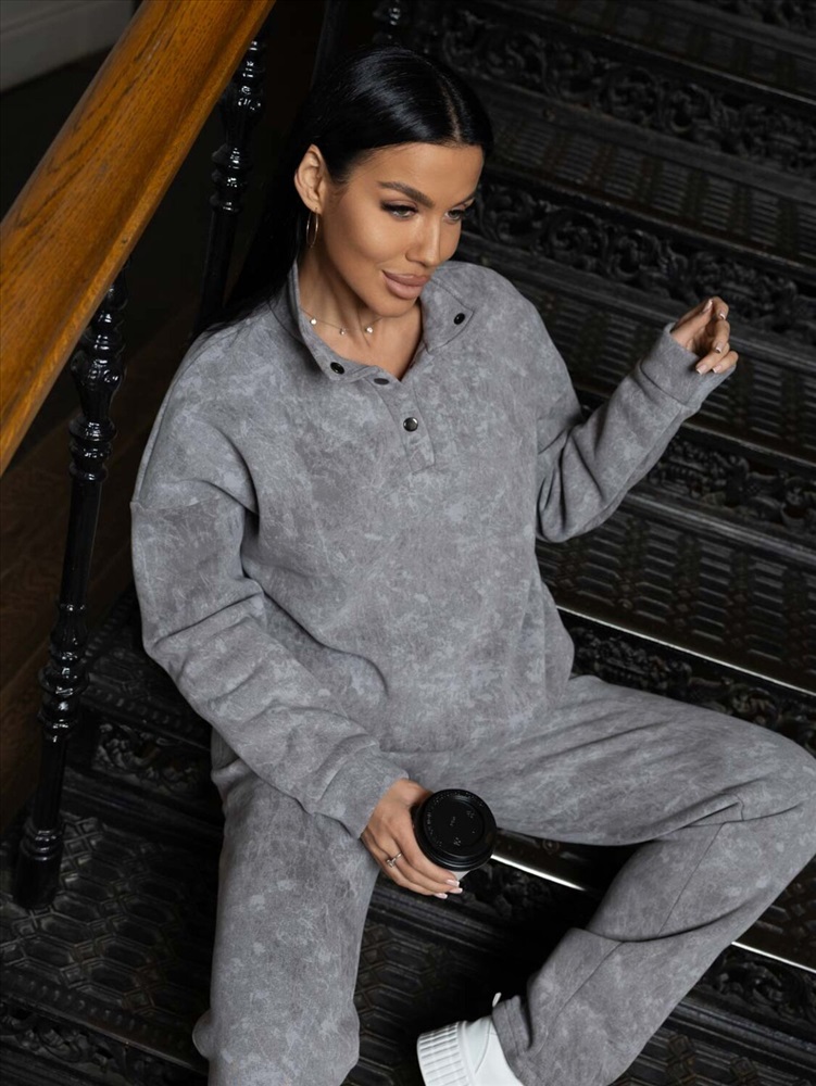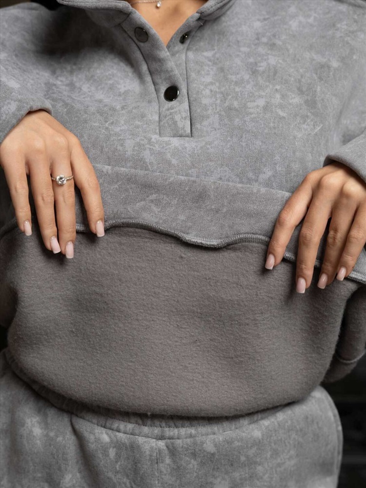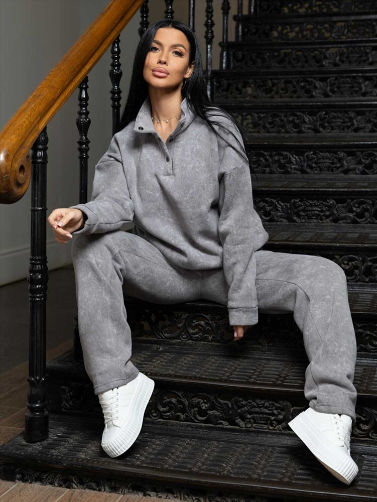 Зимний костюм из ультра модной ткани с начесом, эффект варенки добавляет изюминку изделию. Толстовка с воротником на кнопках защитит в морозы, сохранит тепло и комфорт. Брюки полной длины с карманами можно заправить в ботинки. В нашем костюме вы будите чувствовать себя уютно даже в самый морозный день.