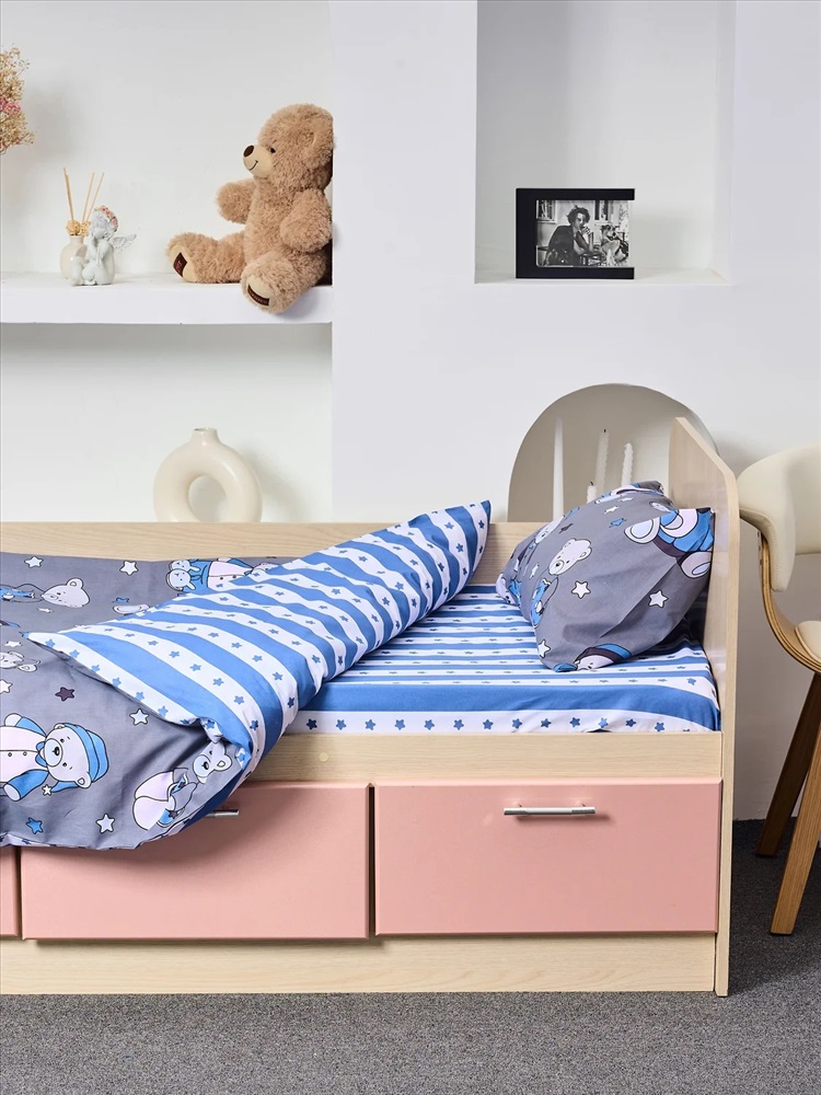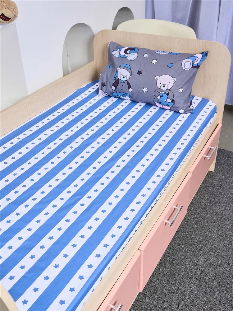 Производитель: Текс-плюс; Артикул поставщика: НФ-00224193; Ткань: Поплин; Состав: 100% Хлопок; Год: 2025; Российский размер: Ясли Постельное белье из поплина с ярким детским рисунком создаст уютную и дружелюбную атмосферу в детской спальне. Изготовленное из качественного поплина - это белье отличается мягкостью и прочностью, что гарантирует комфортный сон вашему малышу. В комплект входит простыня на резинке размером 80х160х20 см, идеально подходящая для детских кроваток.