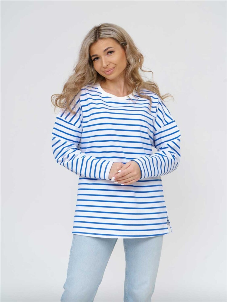 Базовая тельняшка идеально подойдет для составления множества модных аутфитов. Тельняшка в современном прочтении-это обязательно "оверсайз", качественный и невероятно комфортный трикотаж, удлиненные рукава и безупречная посадка! Модель выполнена из европейского трикотажного полотна, качества пенье.