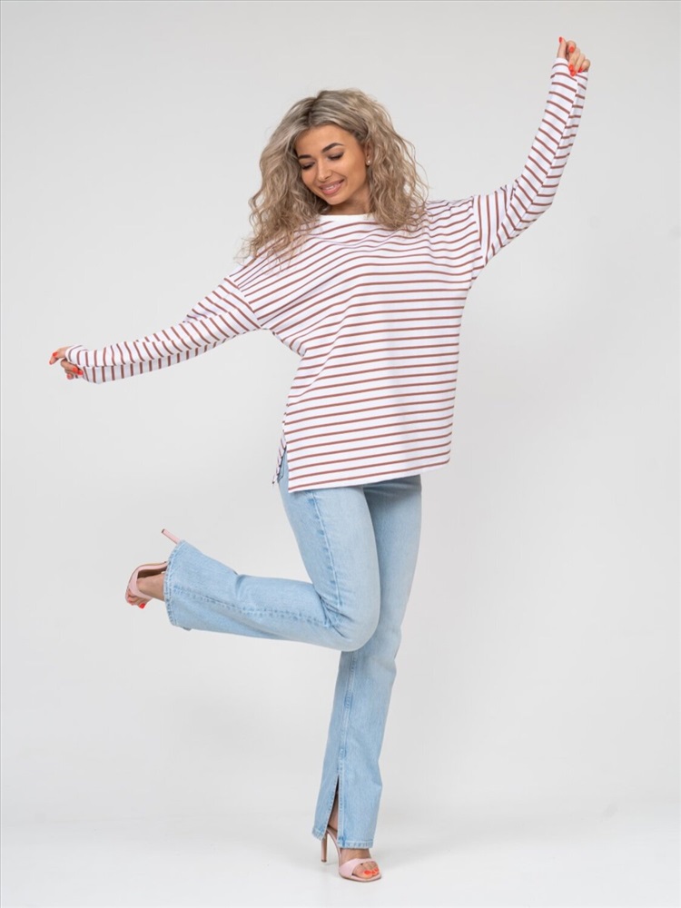 Базовая тельняшка идеально подойдет для составления множества модных аутфитов. Тельняшка в современном прочтении-это обязательно "оверсайз", качественный и невероятно комфортный трикотаж, удлиненные рукава и безупречная посадка! Модель выполнена из европейского трикотажного полотна, качества пенье.