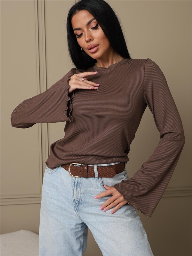 Лонгслив женский из мягкого, приятного к телу материала - лапша, с округлым вырезом горловины и рукавом модели - колокол, расширяющимся к запястью, что придает данной модели уникальный неповторимый стиль и свободу в движении. Отличный вариант базового гардероба на каждый день.