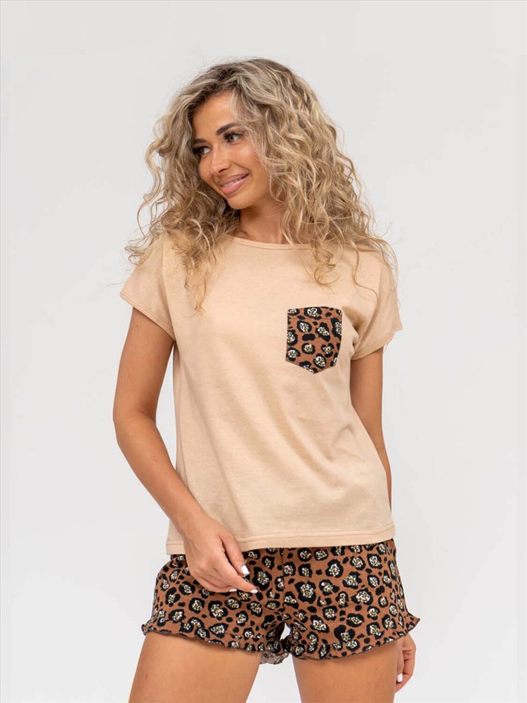 Молодежная пижама из хлопка. Футболка с цельнокроеным рукавом и накладным нагрудным карманом из набивки. Мини шорты на резинке с рюшечкой добавят игривиго настрония. Наша пижама подарит Вам ощущение комфорта.