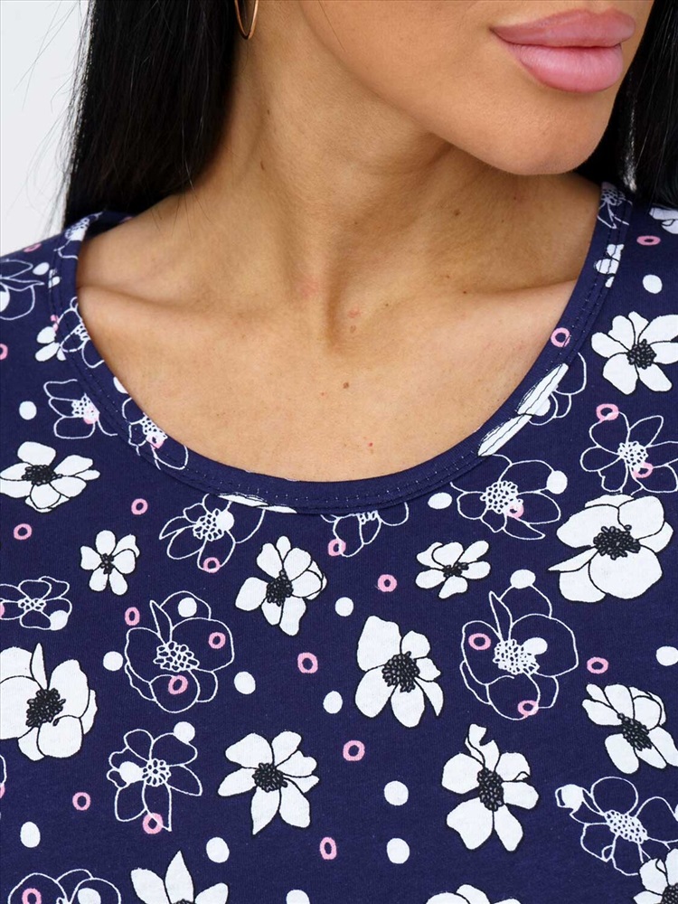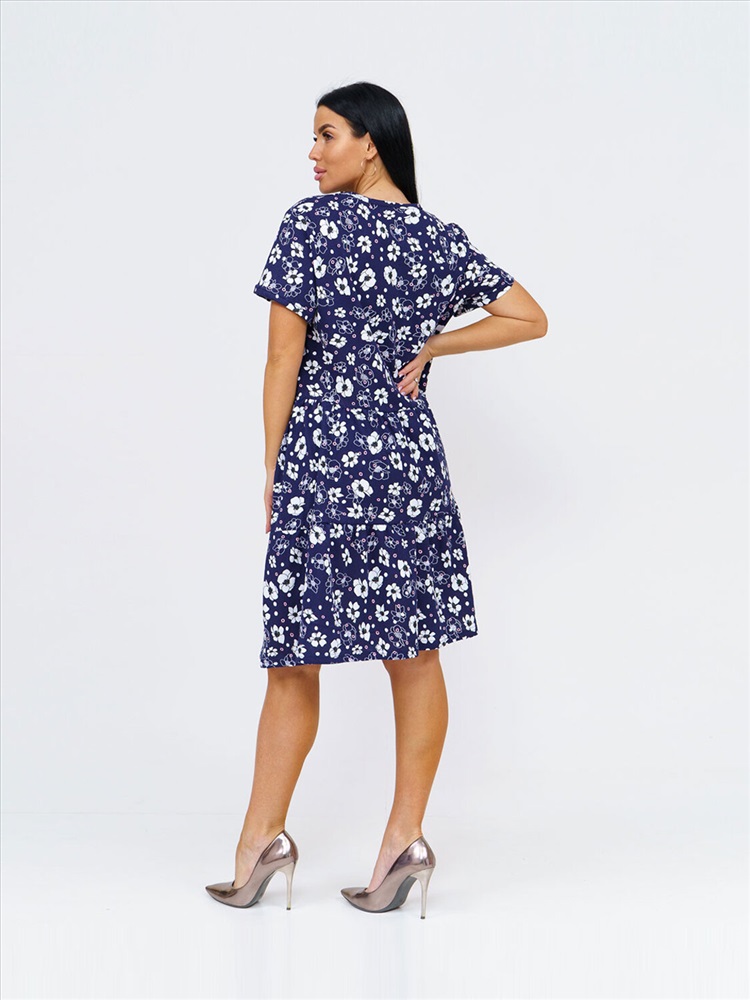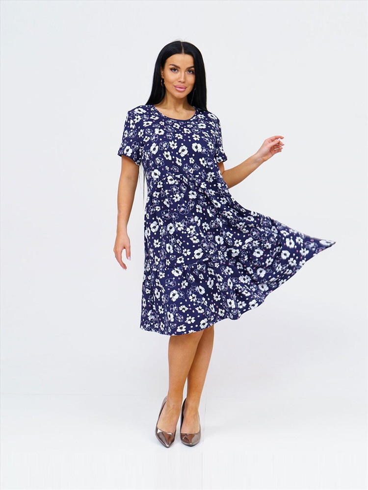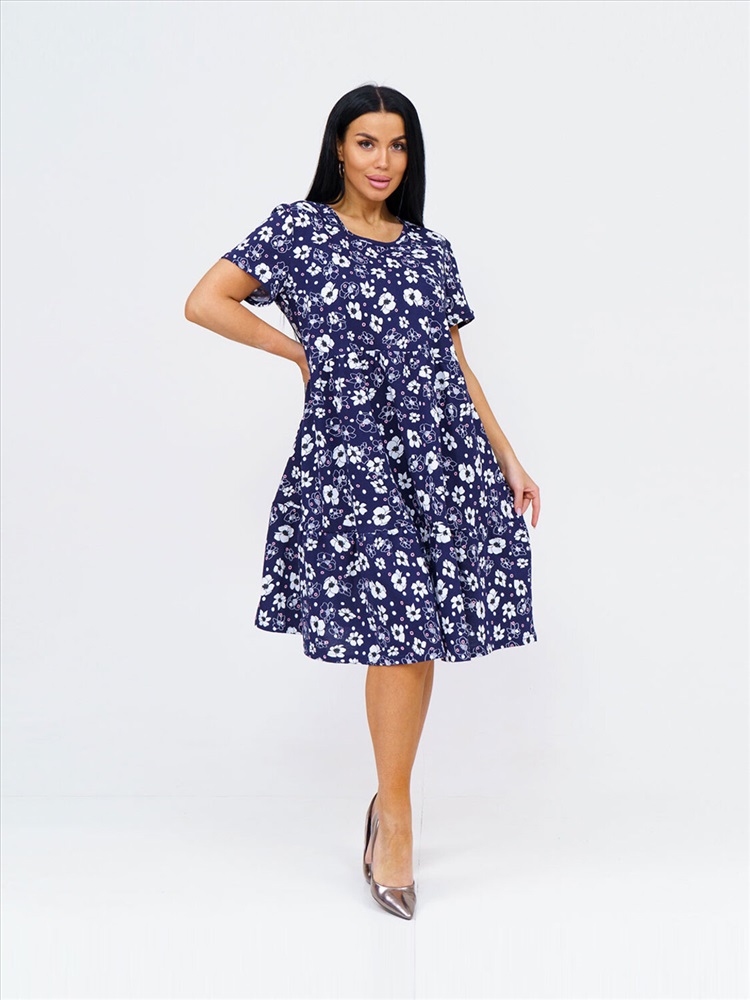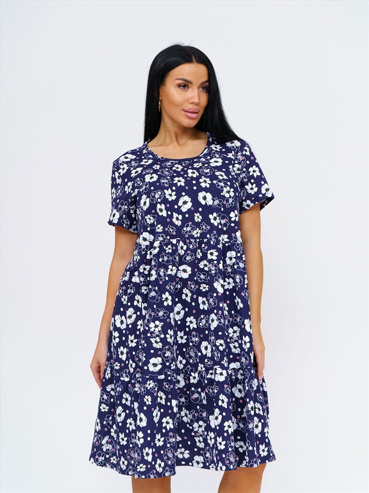 Женское летнее платье из 100% хлопка, полуприлегающего силуэта, длиной ниже уровня колена, рукав короткий, горловина О-образная. Платье идеально подойдет для жаркого летнего дня.