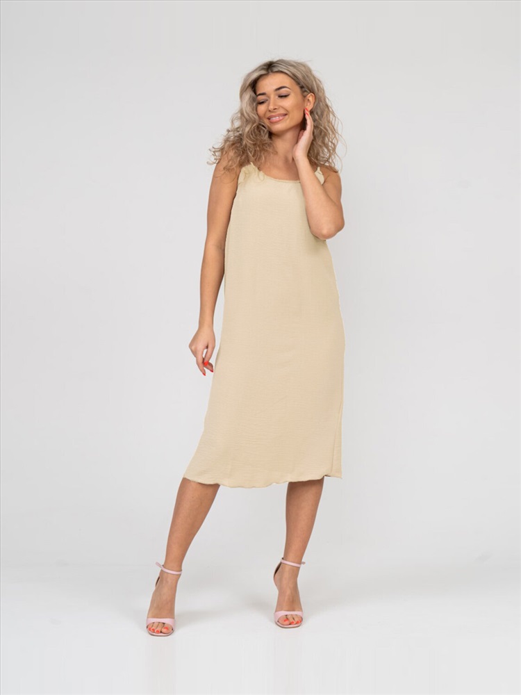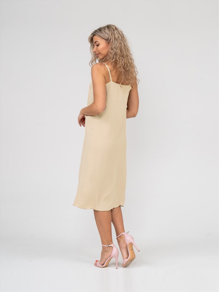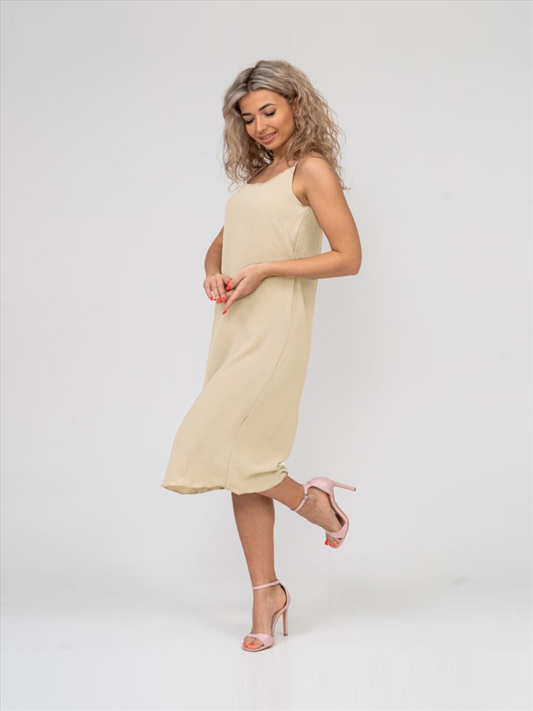 С утра погода так не предсказуема и выбор одежды становится мучительно долгим. Платье сорочка (платье комбинация в бельевом стиле) настоящее спасение для городских модниц. Можно накинуть жакет или джемпер прохладным утром.Платье на тонких бретелях, длины миди из ткани с легким мятым эффектом.