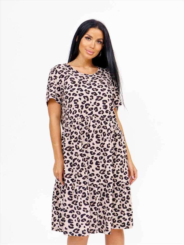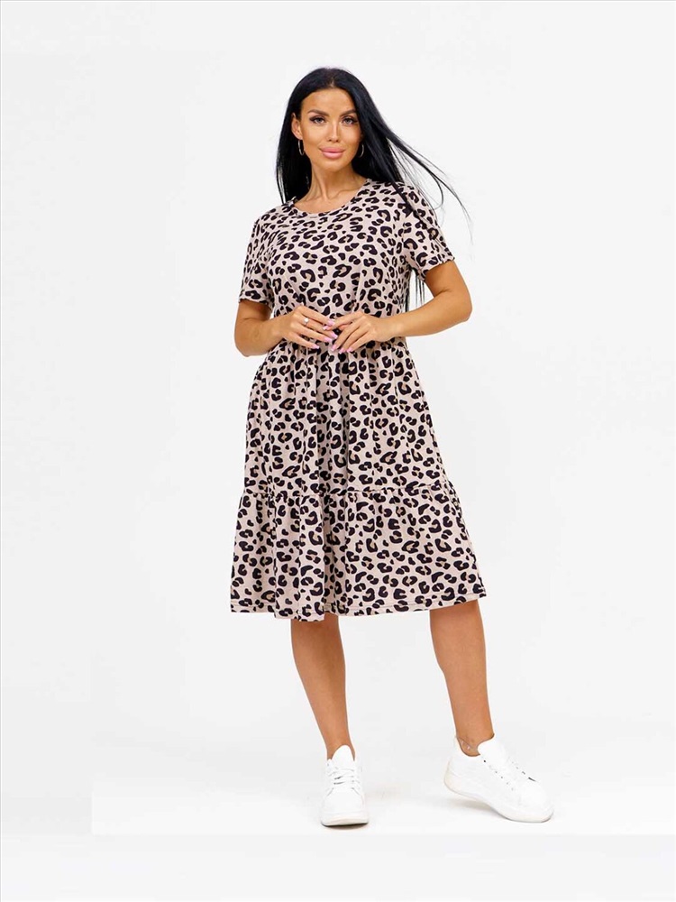 Женское летнее платье из 100% хлопка, полуприлегающего силуэта, длиной ниже уровня колена, рукав короткий, горловина О-образная. Платье идеально подойдет для жаркого летнего дня.