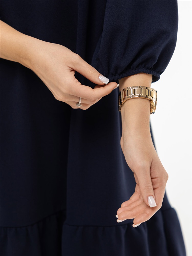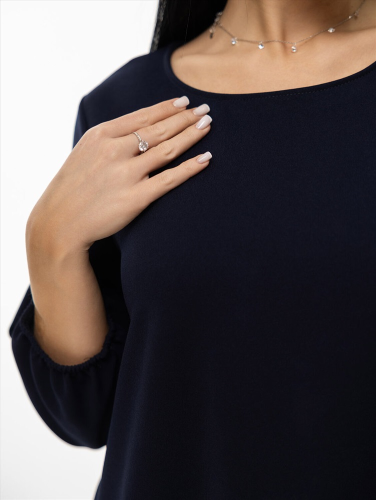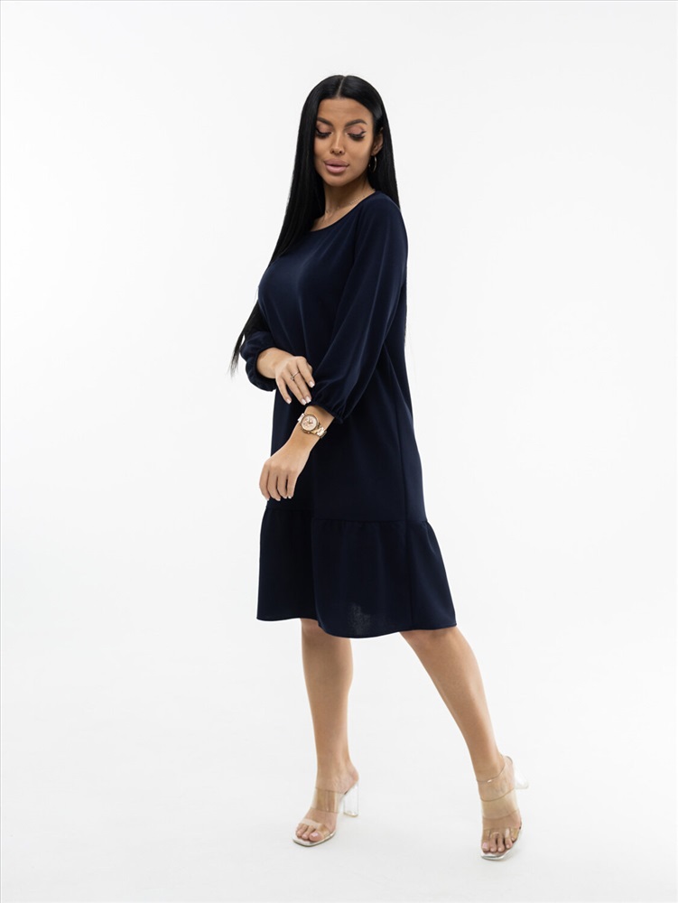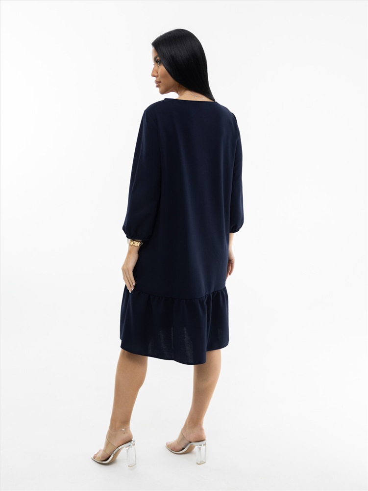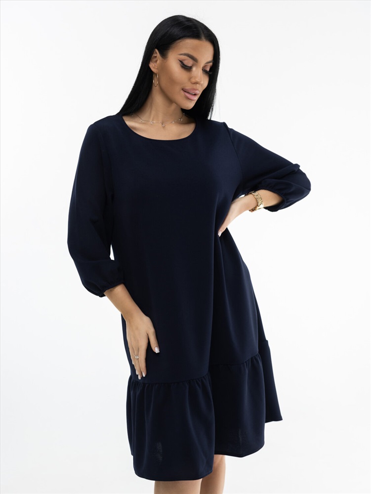 Платье женское свободного силуэта, вырез горловины О-образный, рукава 3/4 присборены. Костюмная ткань средней плотности, почти не мнется.
