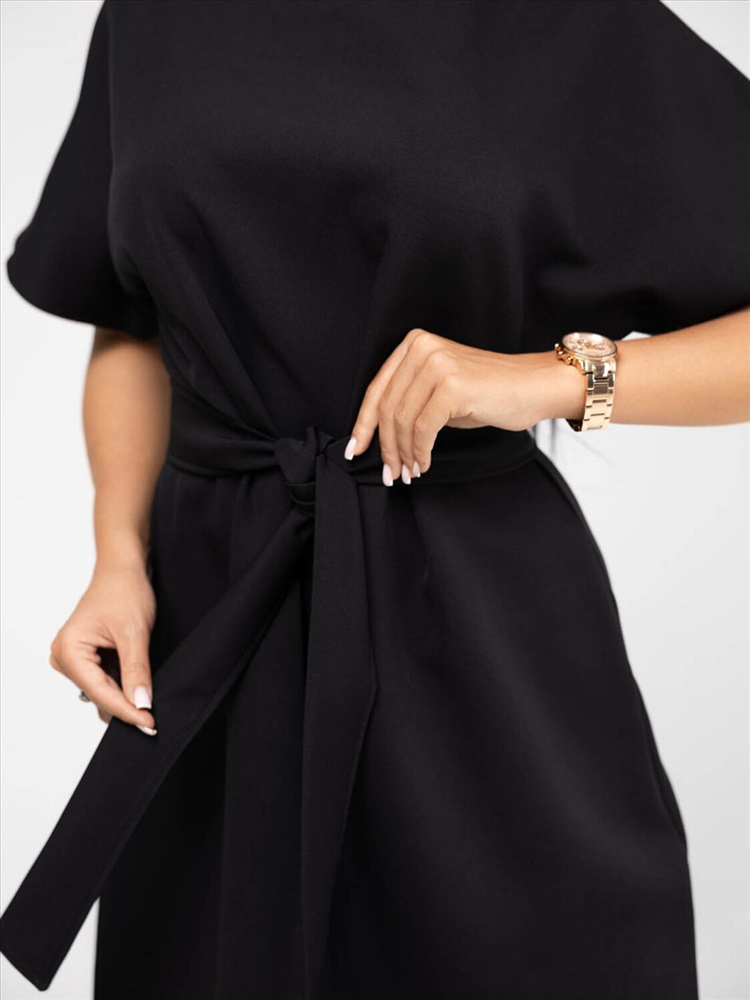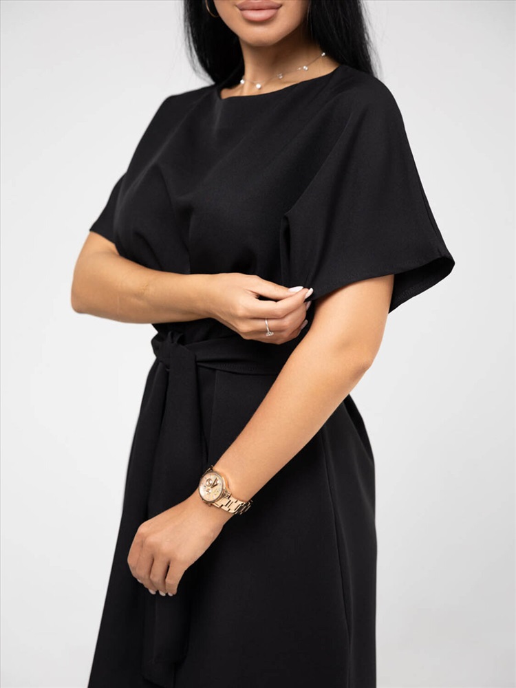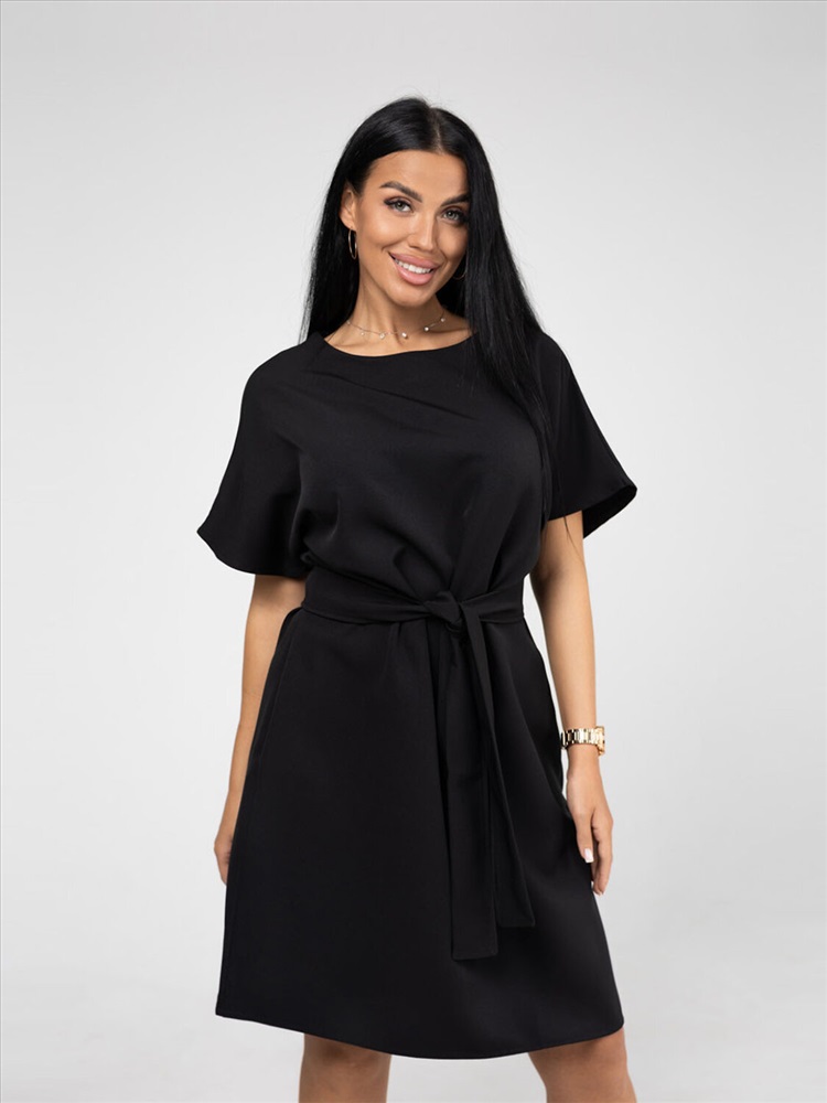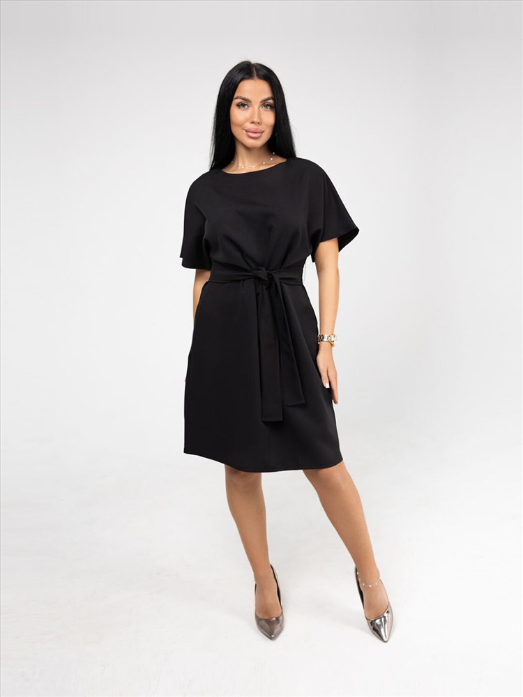 Женское платье полуприлегающего силуэта длиной до колена, коротким рукавом, О-образной горловиной и поясом, который подчеркнет талию.Наше платье идеально подойдет на работу или на прогулку.