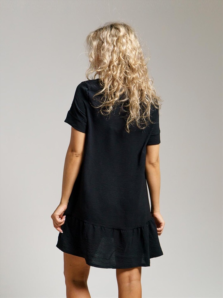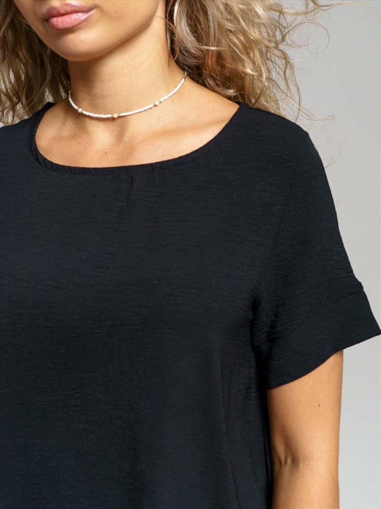 Воздушное платье с легким мятым эффектом, асимметричной линией низа, коротким рукавом и округлой горловиной. Платье подойдет на любой случай, дополните платье сандалями и шляпкой и вот у вас модный лук для пляжа, замените сандали на туфли, возьмите маленькую сумочку и вот отличный образ на работу или свидание.