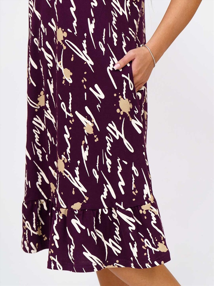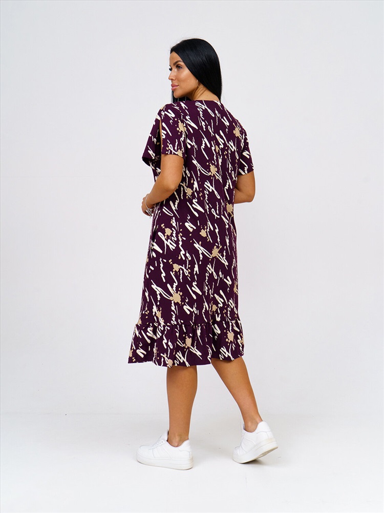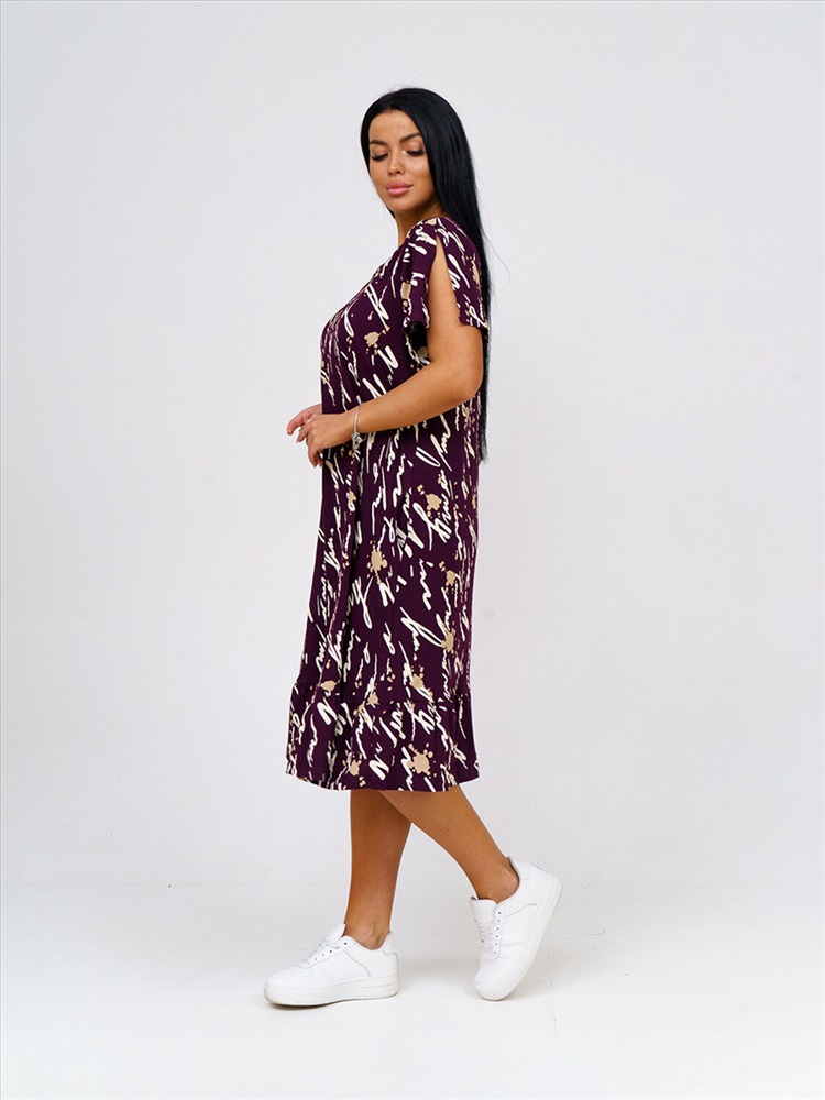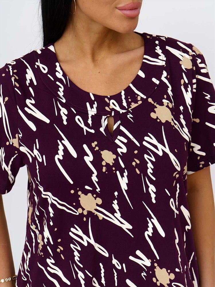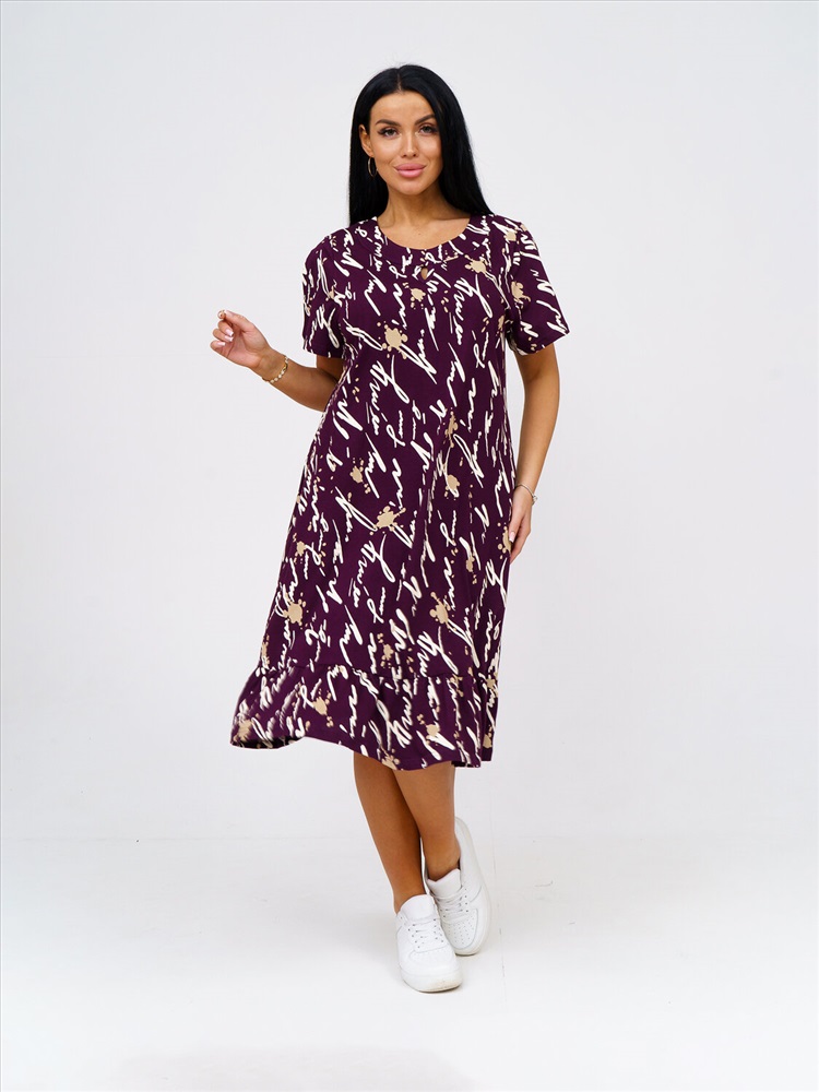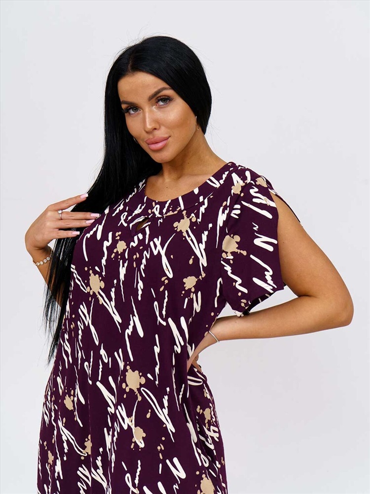 Женское платье, длиной чуть ниже колена, с коротким рукавом и оригинально оформленой горловиной, отлично подойдет на лето. Благодаря составу из 100% хлопка Вы будете чувствовать себя комфортно в нашем платье даже в самый жаркий день.