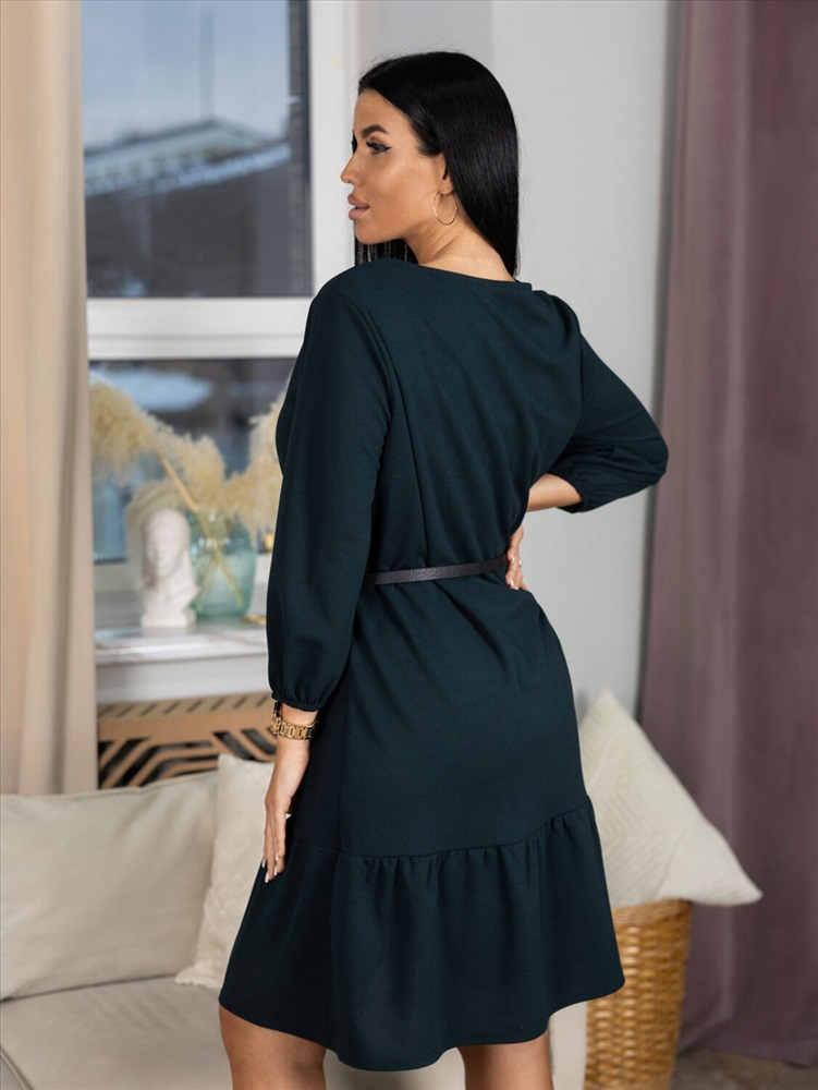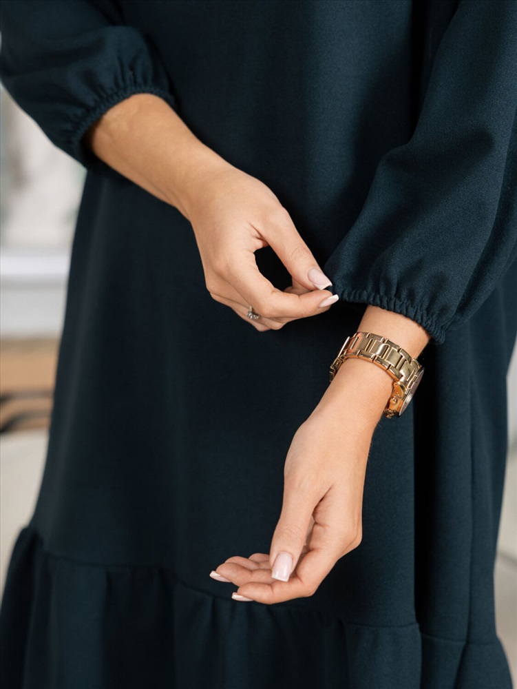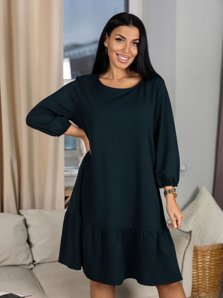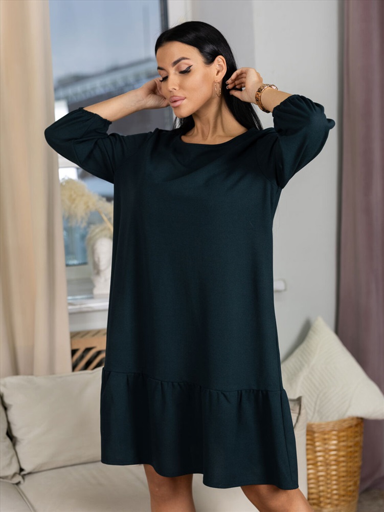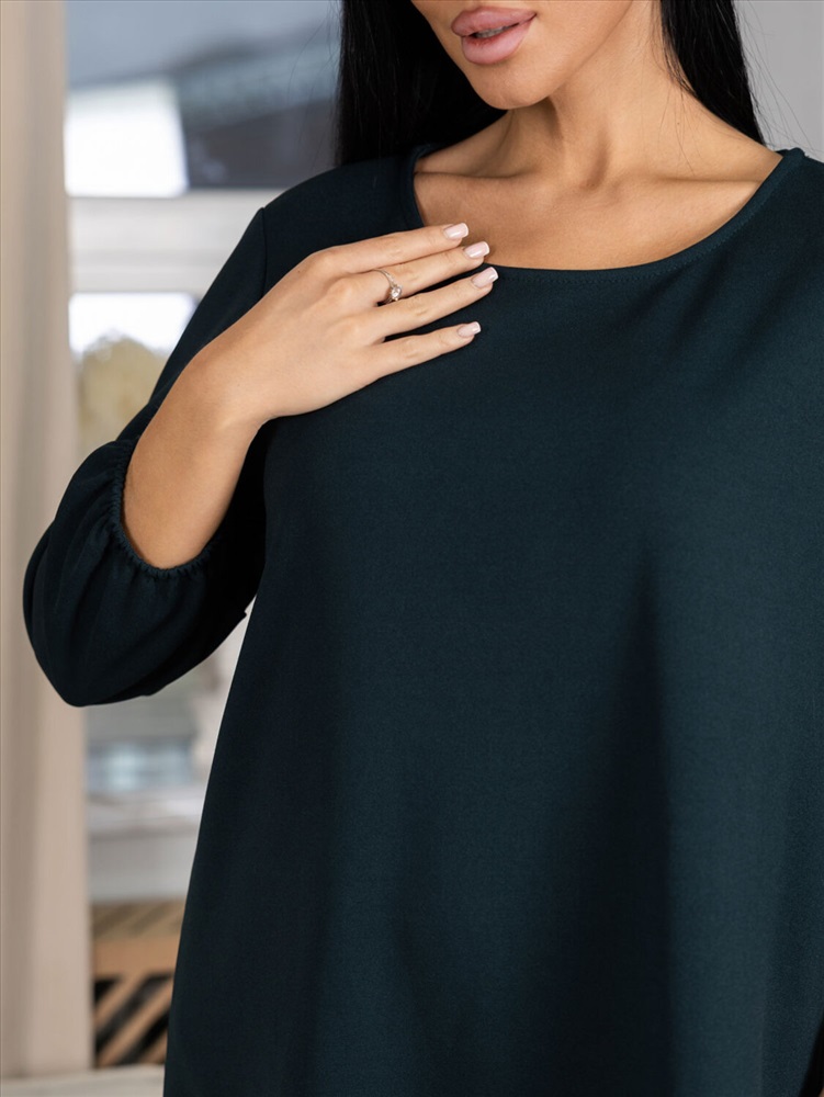 Платье женское свободного силуэта, вырез горловины О-образный, рукава 3/4 присборены. Костюмная ткань средней плотности, почти не мнется.