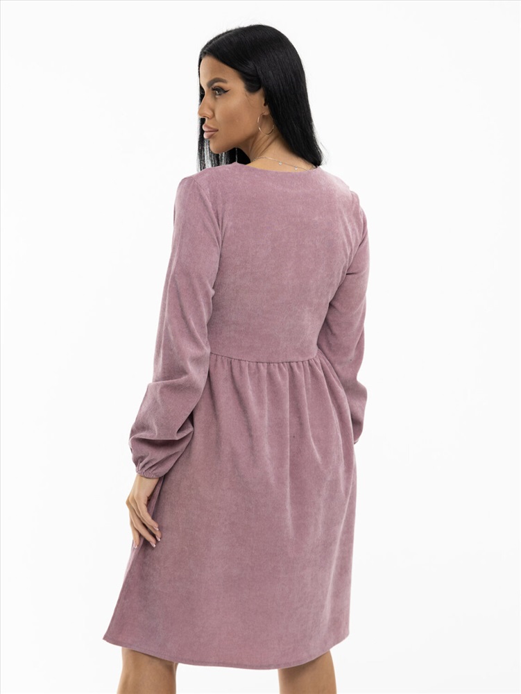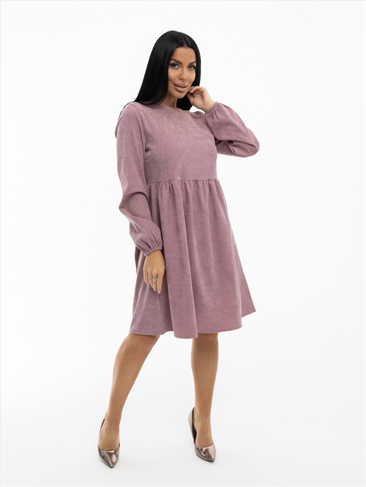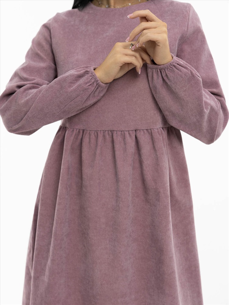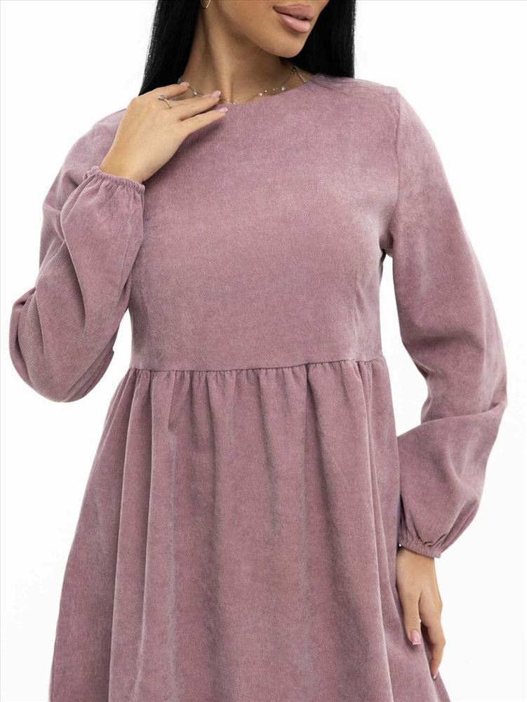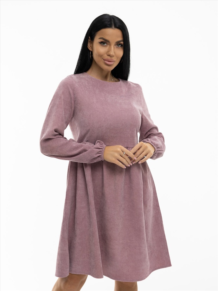 Повседневное платье из микровельвета, идеально подойдет на каждый день, материал приятный на ощупь и хорошо держит форму. Завышенная талия, О-образная горловина, длинный рукав с резинкой по низу.