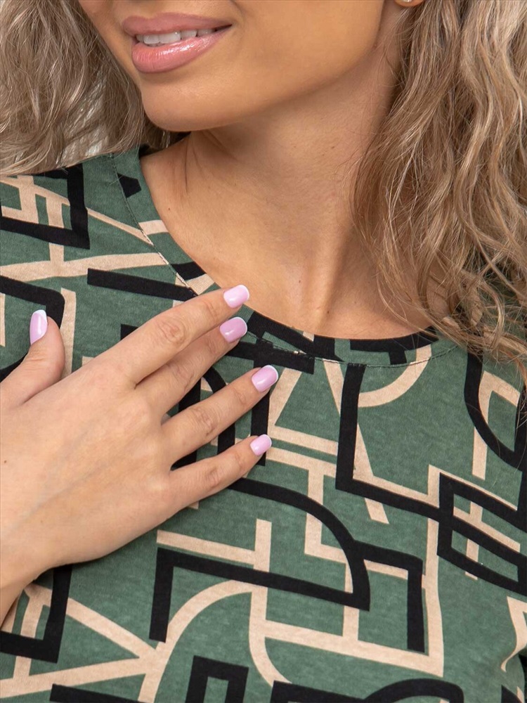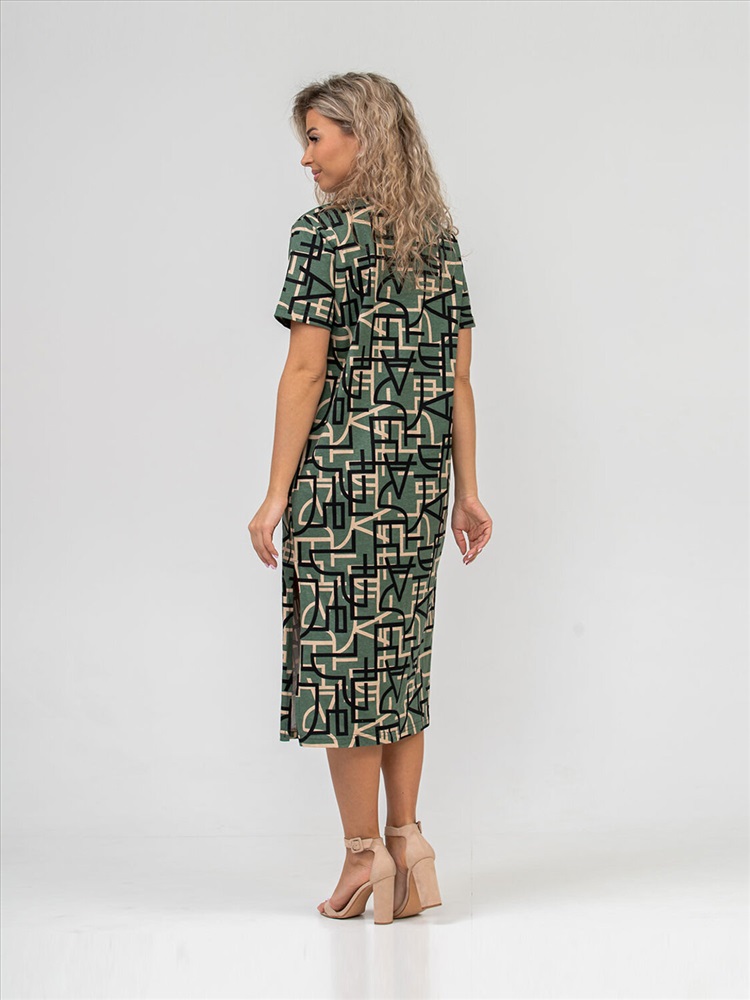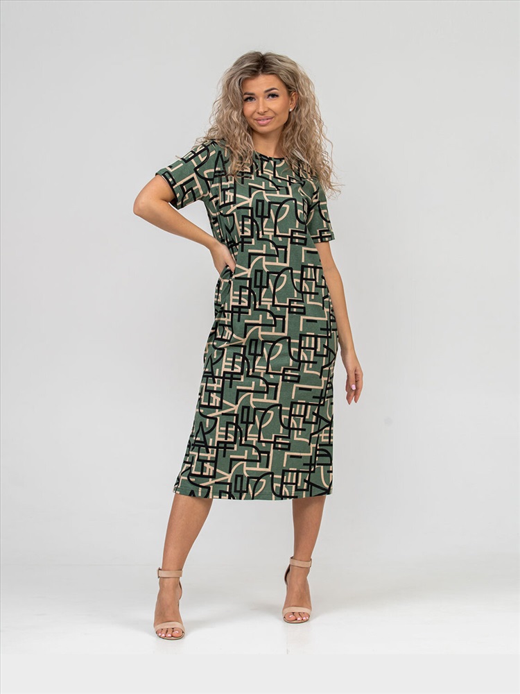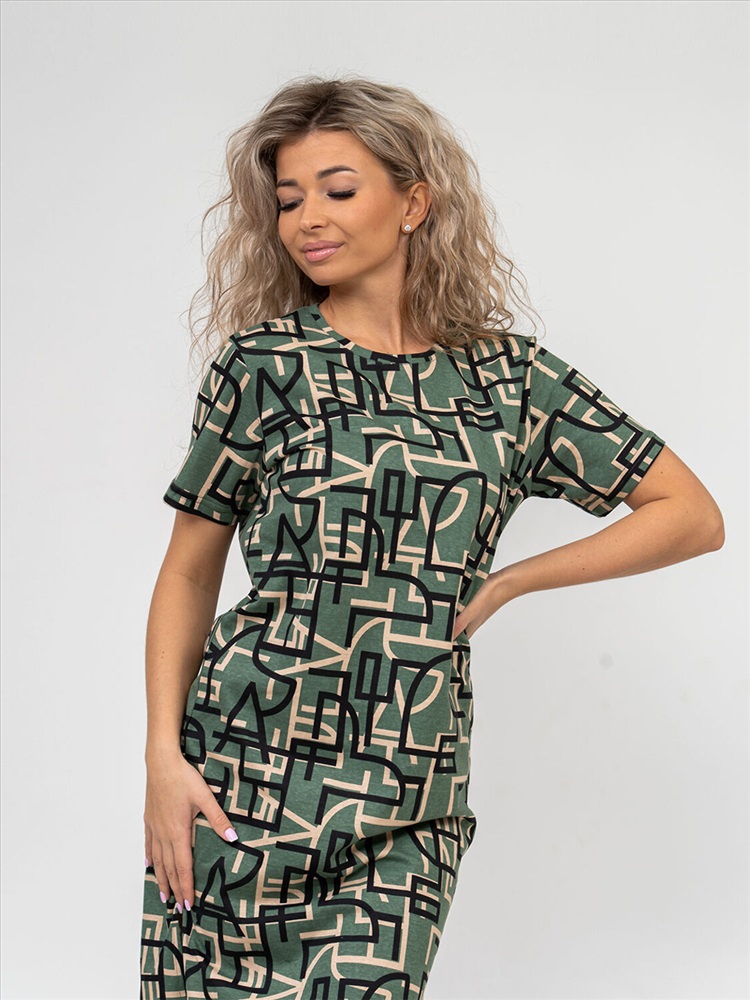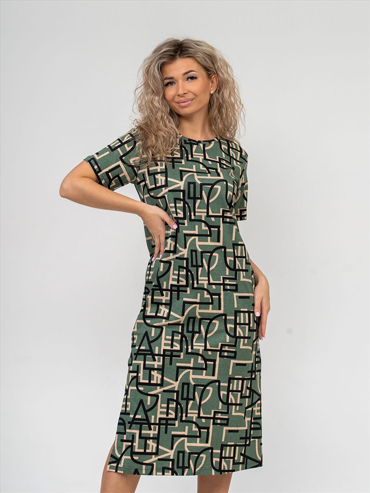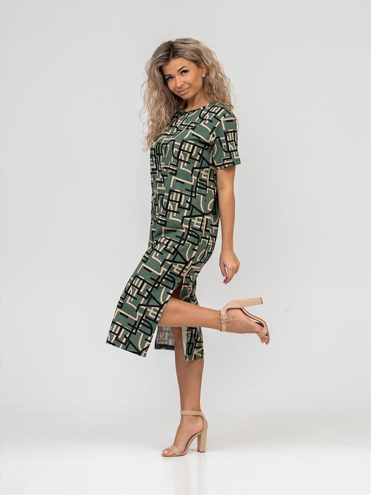 Платье молодёжное из набивного трикотажного полотна 100% хлопка длиной ниже колена. Рукав базового покроя, короткий. Вырез горловины О-образный. По боковым швам присутствуют разрезы.Платье идеально подойдёт для жаркого летнего дня.