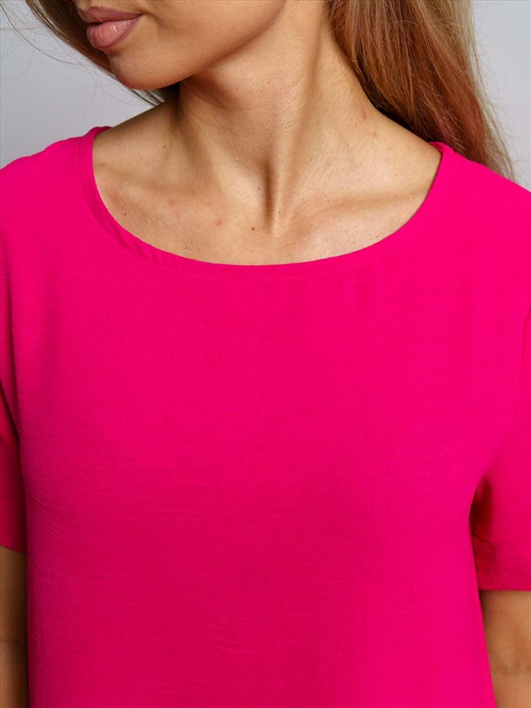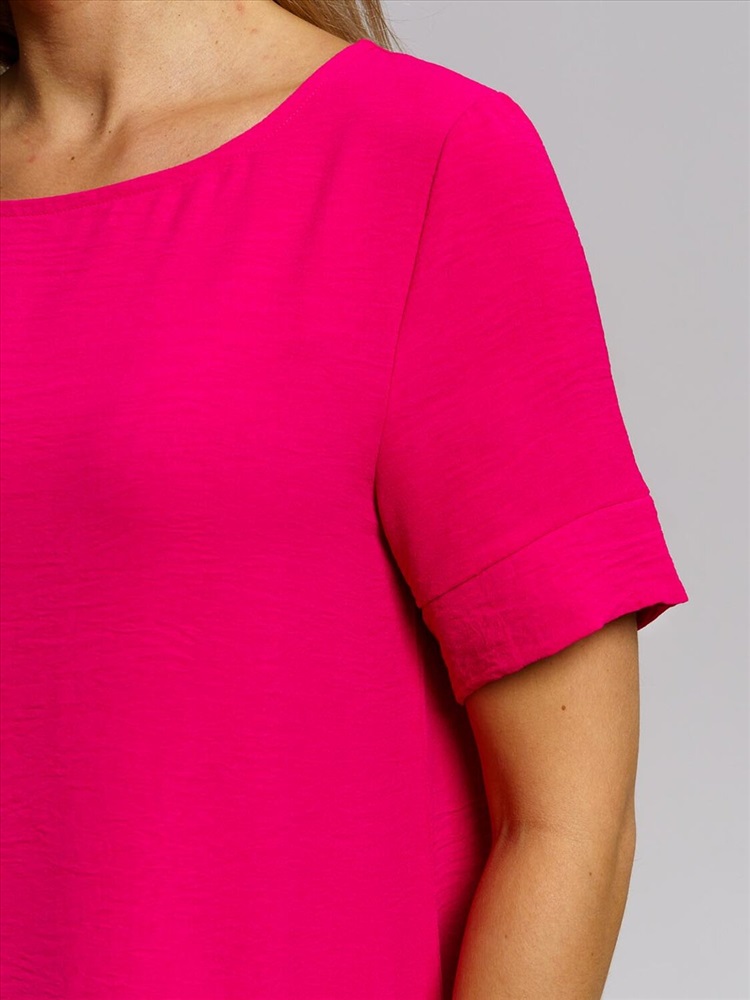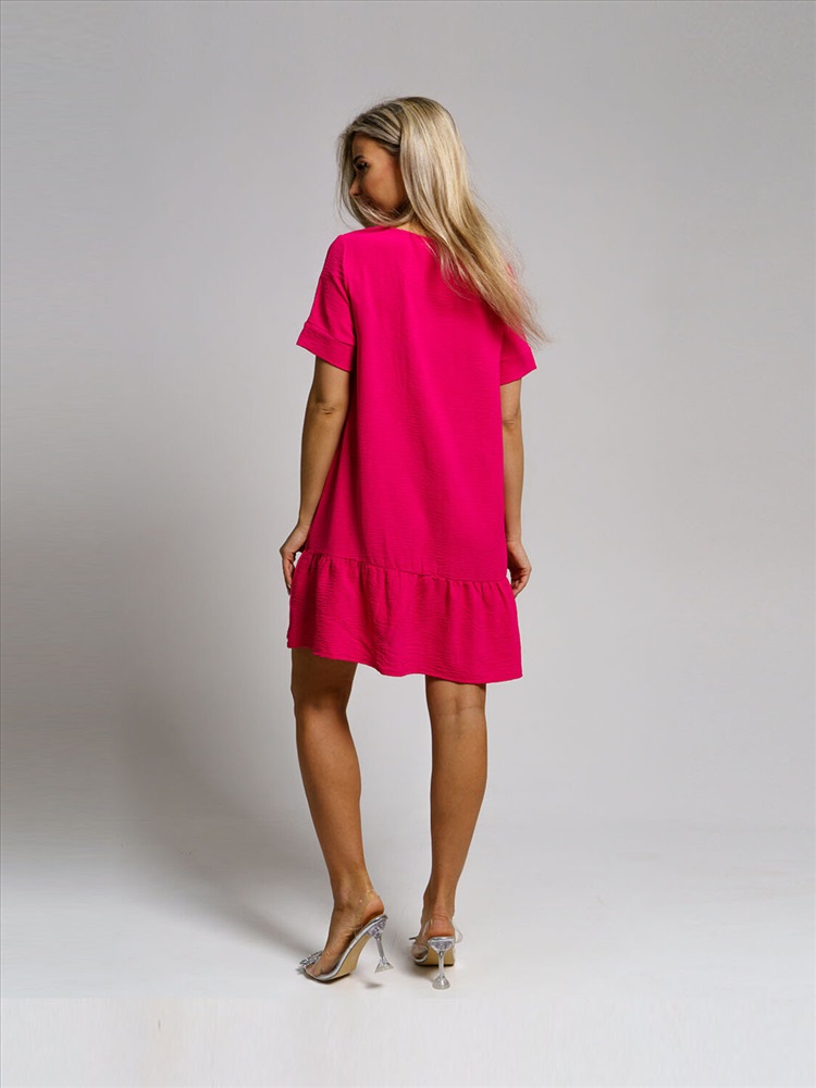Воздушное платье с легким мятым эффектом, асимметричной линией низа, коротким рукавом и округлой горловиной. Платье подойдет на любой случай, дополните платье сандалями и шляпкой и вот у вас модный лук для пляжа, замените сандали на туфли, возьмите маленькую сумочку и вот отличный образ на работу или свидание.