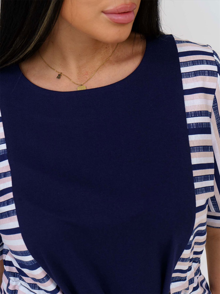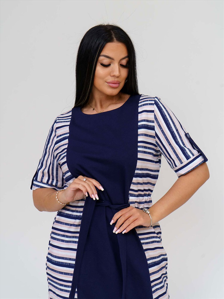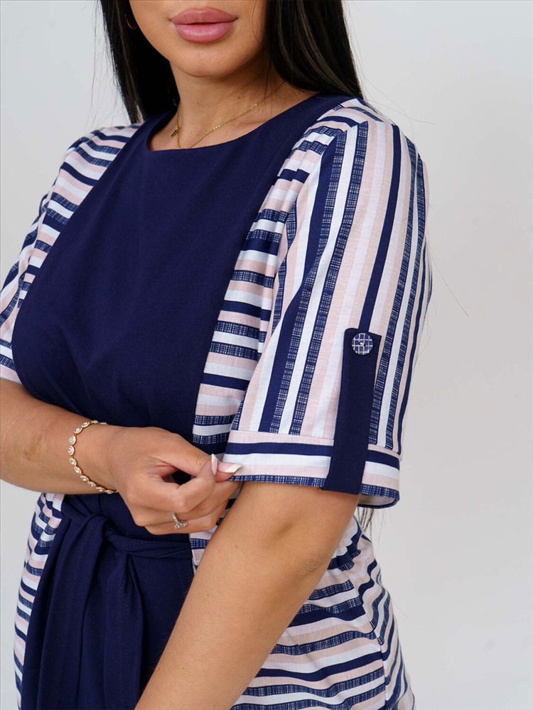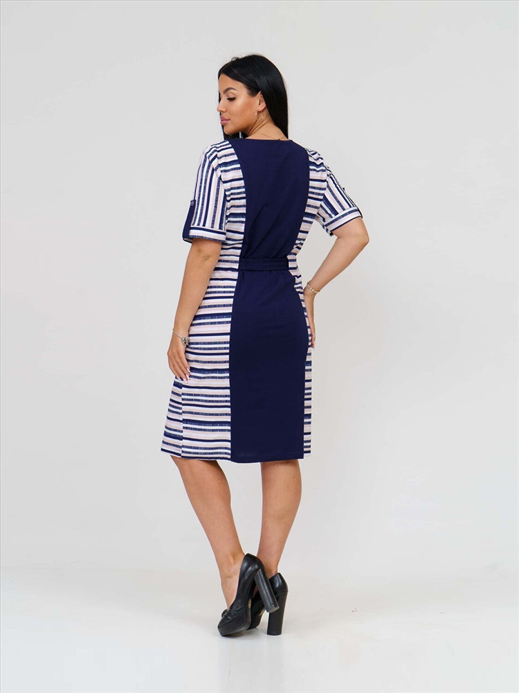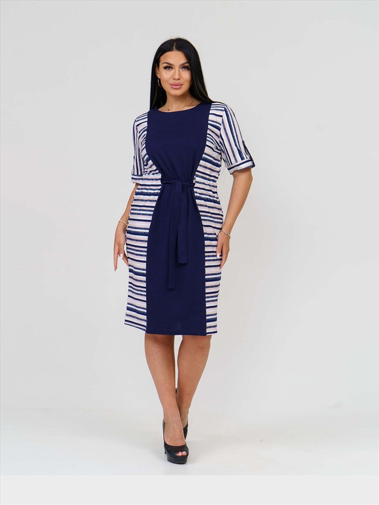 Производитель: Текс-плюс; Российский размер: 50; Обхват груди: 98-102; Обхват талии: 82-85; Обхват бедер: 105-108; Артикул поставщика: НФ-00138921; Ткань: Кулирка; Состав: 100% Хлопок; Год: 2025; Рост: 164-168 Женское платье полуприлегающего силуэта длиной до колена, коротким рукавом, О-образной горловиной и поясом на кулиске, который подчеркнет талию. Благодаря тканям компаньонам и рельефам платье удивительно стройнит. Наше платье идеально подойдет на работу или на прогулку.