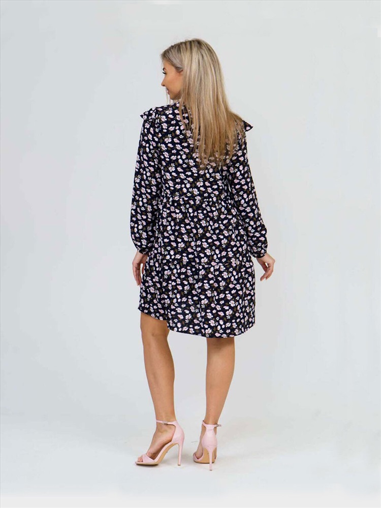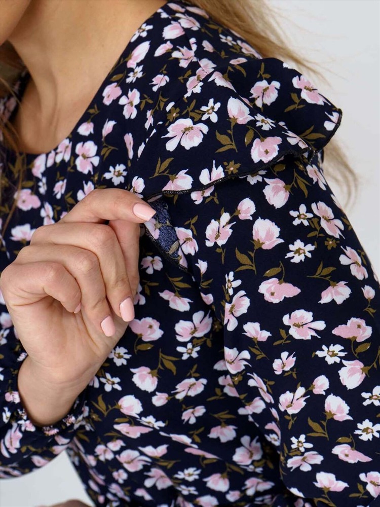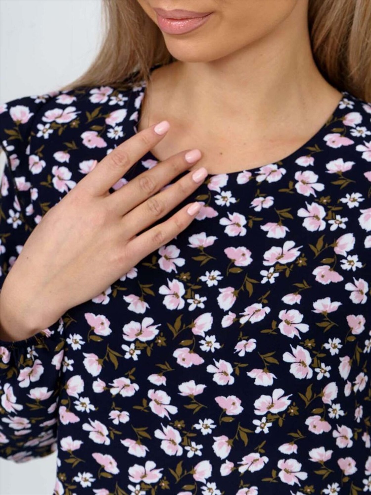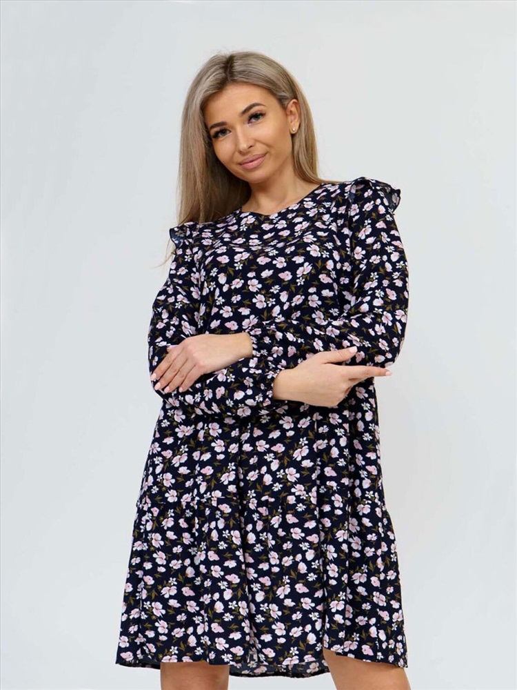 Платье женское полуприлегающего силуэта, с О-образной горловиной. Длина изделия чуть выше колена. Рукав свободный, длиной до запястья. Платье легкое, из штапеля идеально подходит на каждый день.