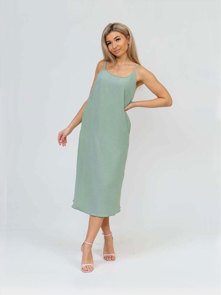 С утра погода так не предсказуема и выбор одежды становится мучительно долгим. Платье сорочка (платье комбинация в бельевом стиле) настоящее спасение для городских модниц. Можно накинуть жакет или джемпер прохладным утром.Платье на тонких бретелях, длины миди из ткани с легким мятым эффектом.