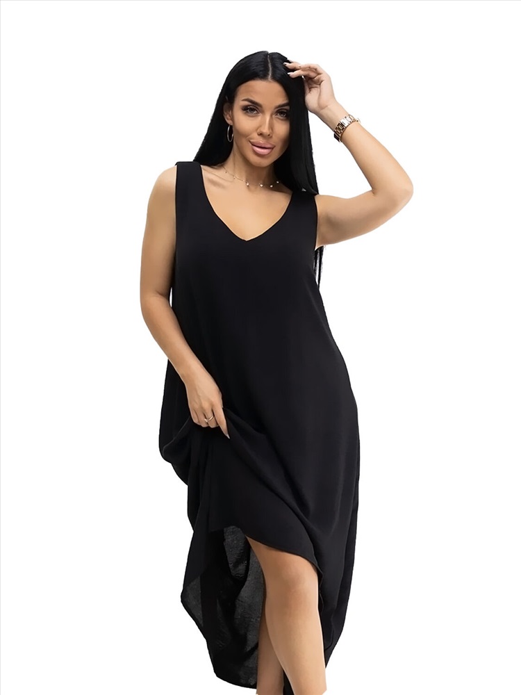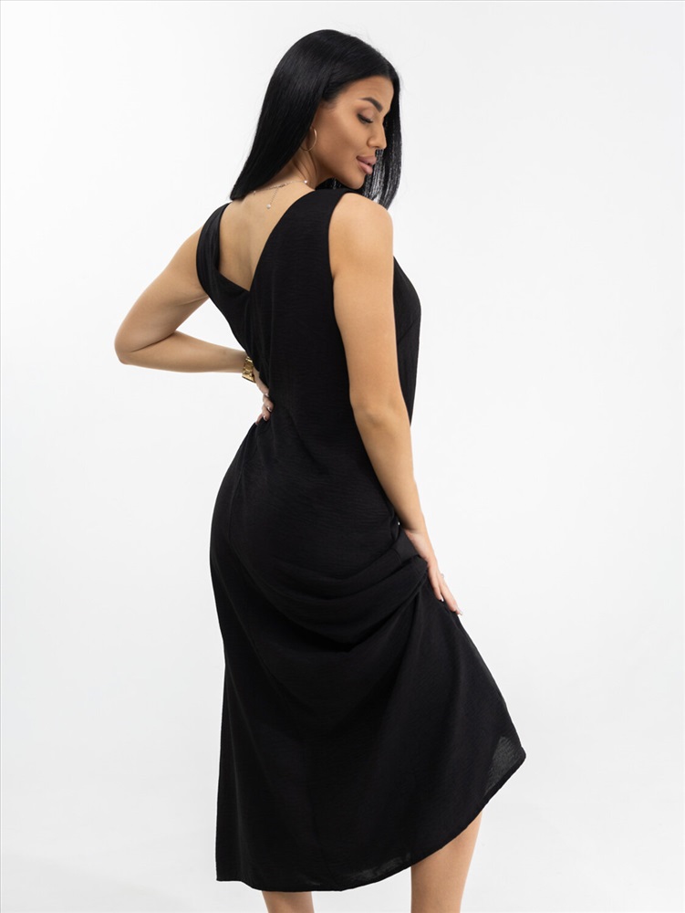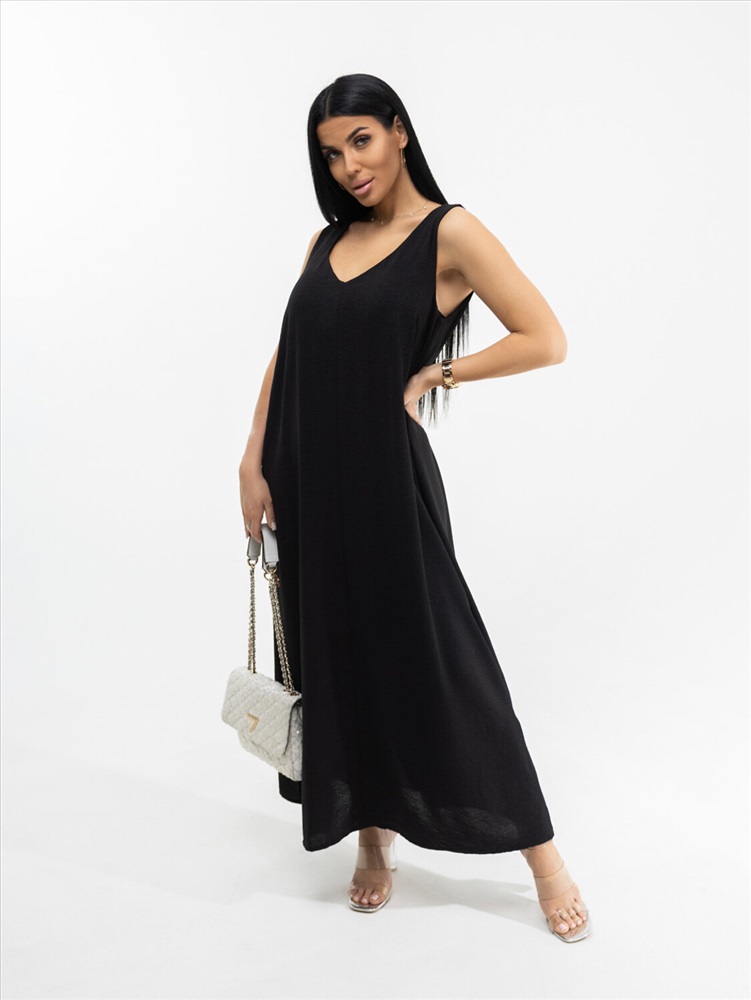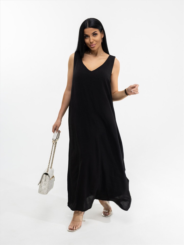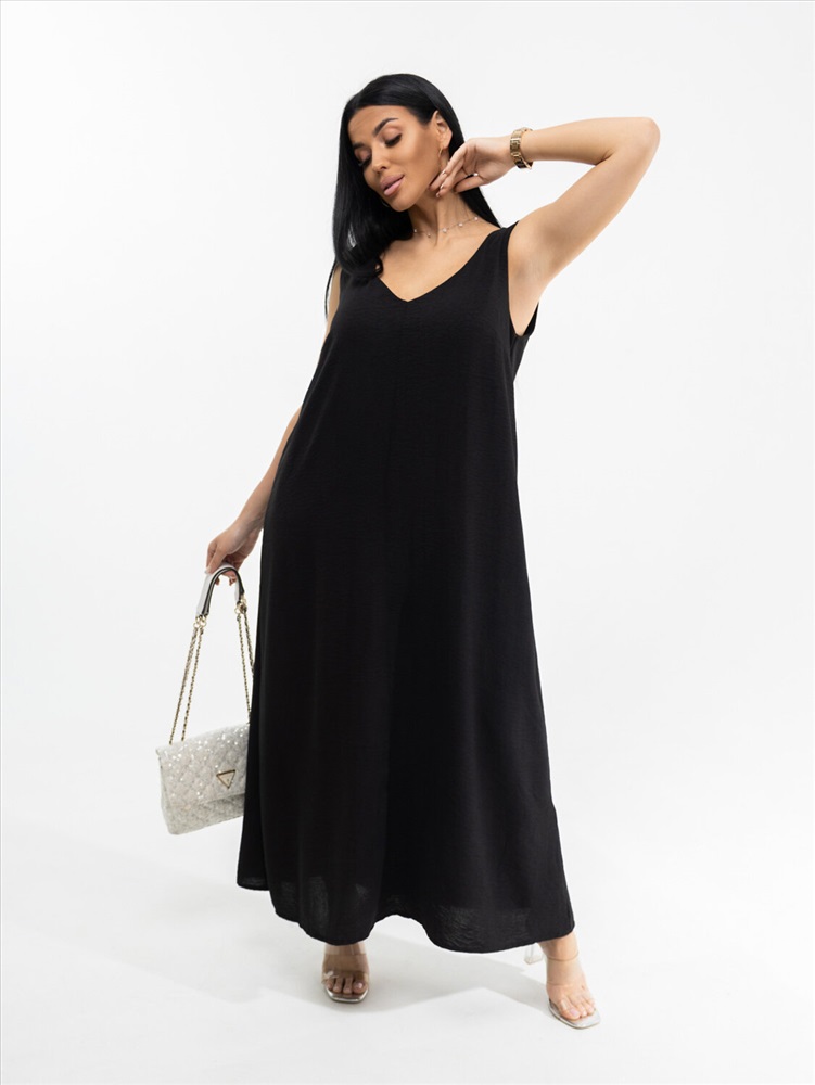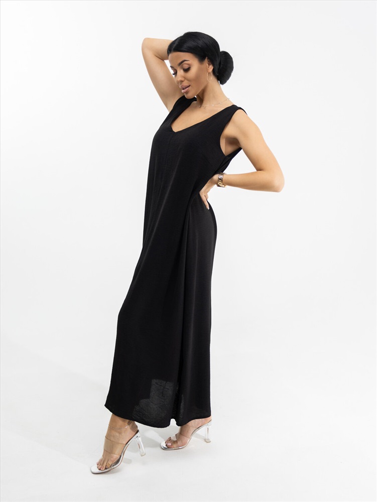 Платье макси с приоткрытой спиной и глубоким V-образным вырезом на передней части. Без рукавов. Легкое и элегантное. Подчеркивает достоинства и скрывает недостатки. Чтобы его хотелось надеть - повод не нужен.