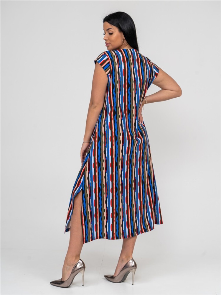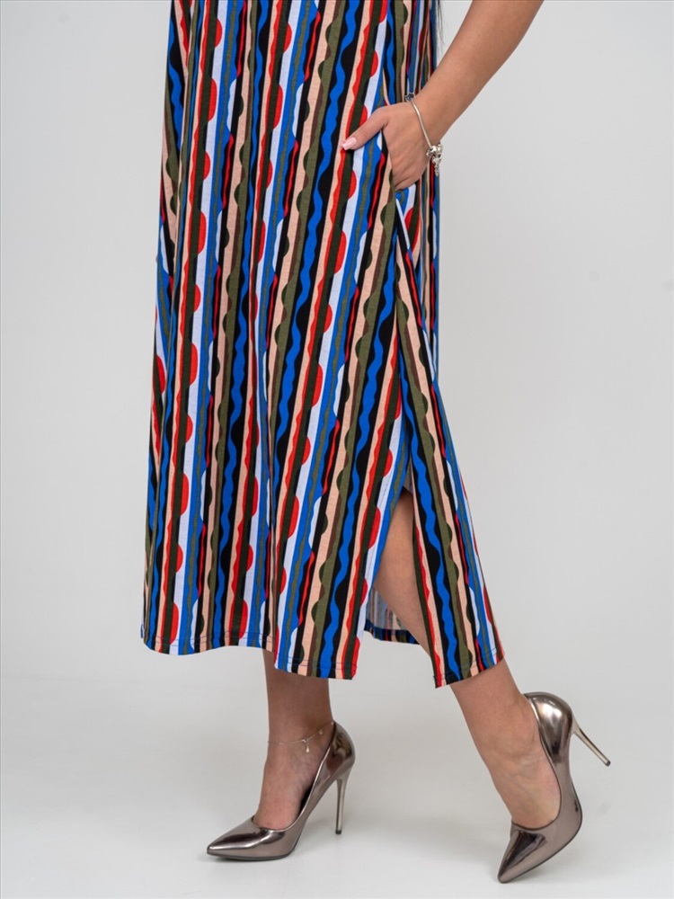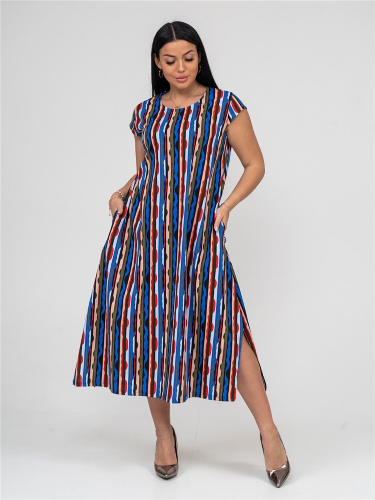 Платье в стиле бохо с карманами, с высокими разрезами по бокам, О-образной горловиной, фигурным рукавом, длины миди. Платье отлично подойдет для отпуска на море.