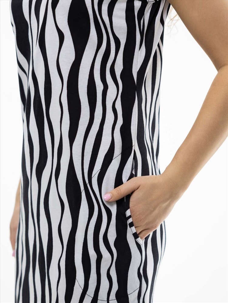 Сарафан женский прилегающего силуэта, длиной до уровня лодыжки. Вырез горловины - лодочка. Без рукавов. Есть карманы с отрезным бочком. Нижняя часть сарафана имеет вырез.