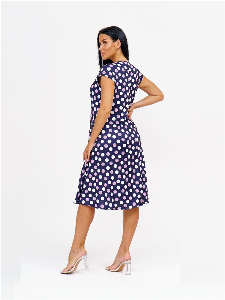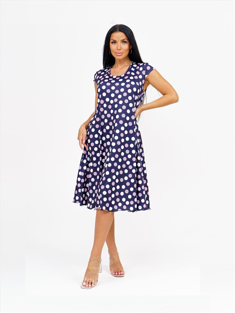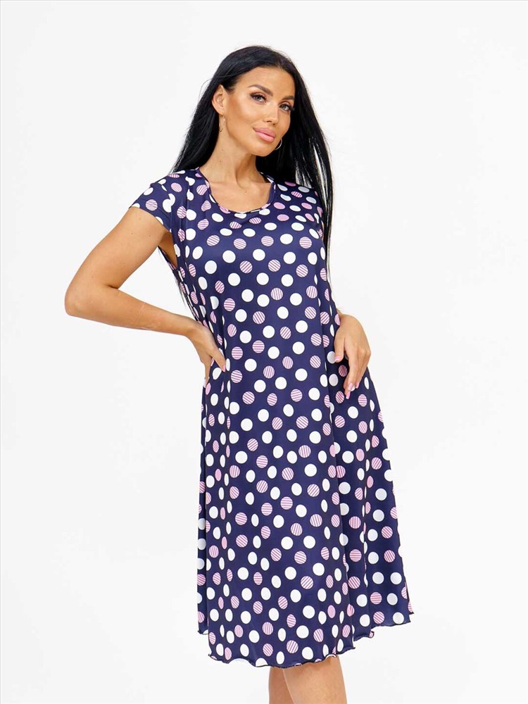 Легкий женский сарафан, расклешенный к низу, длиной ниже колена. Сарафан отлично подчеркивает достоинства фигуры, за счет "шелковистой" фактуры ткани, короткий рукав "крылышко" отлично скроет лишний обьем в области рук, а О-образная горловина будет хорошо смотреться с любыми украшениями.