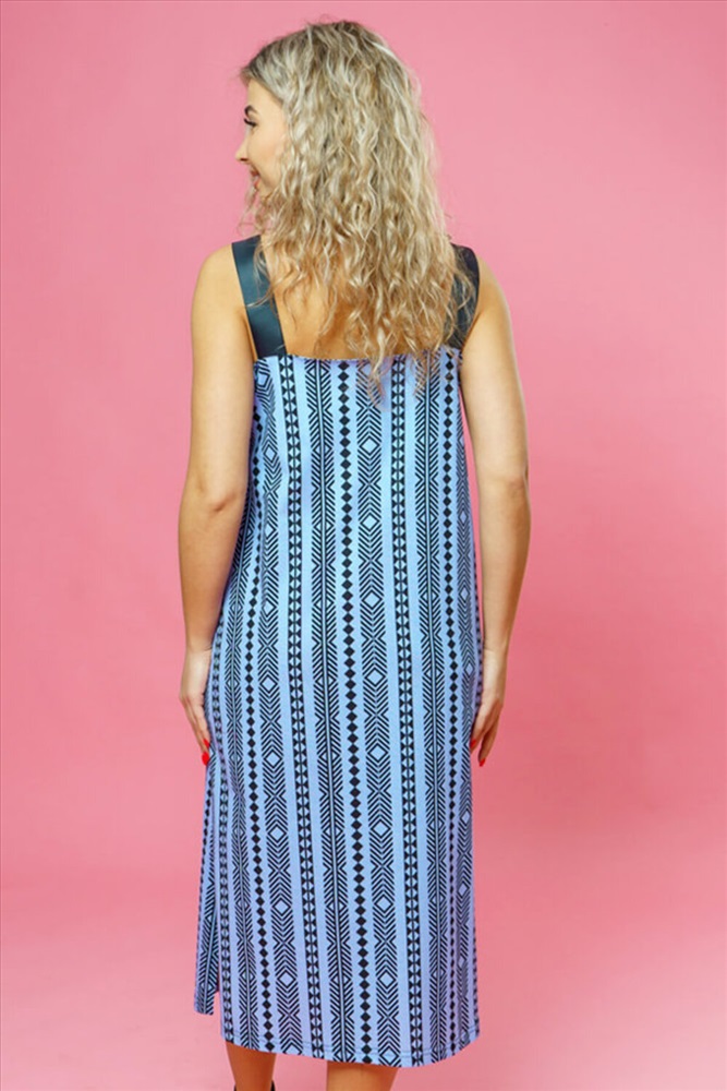 Летний сарафан из 100% хлопка, свободной силуэтной формы, с V-образной горловиной, на широких бретелях и разрезами по боковым швам.