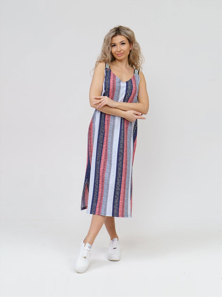 Производитель: Текс-плюс; Артикул поставщика: НФ-00031393; Ткань: Кулирка; Состав: 100% Хлопок; Год: 2025; Российский размер: 44; Рост: 164-168; Обхват груди: 86-90; Обхват талии: 70-73; Обхват бедер: 96-98 Летний сарафан из 100% хлопка, свободной силуэтной формы, с V-образной горловиной, на широких бретелях и разрезами по боковым швам.